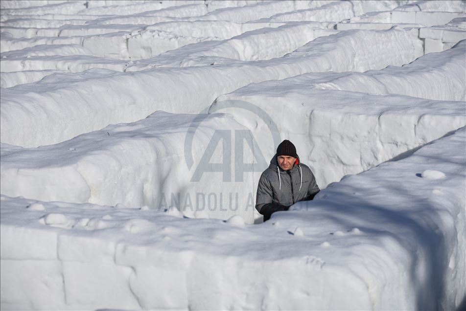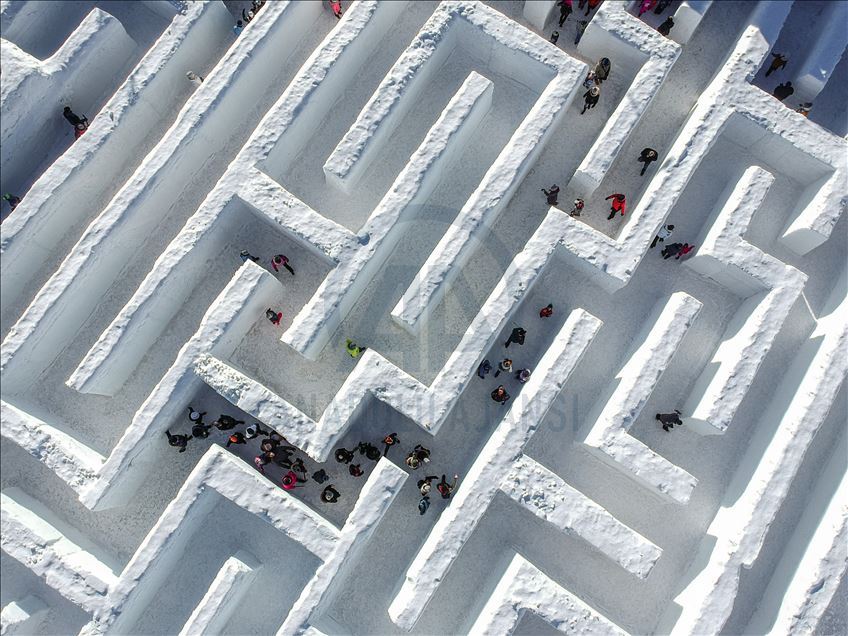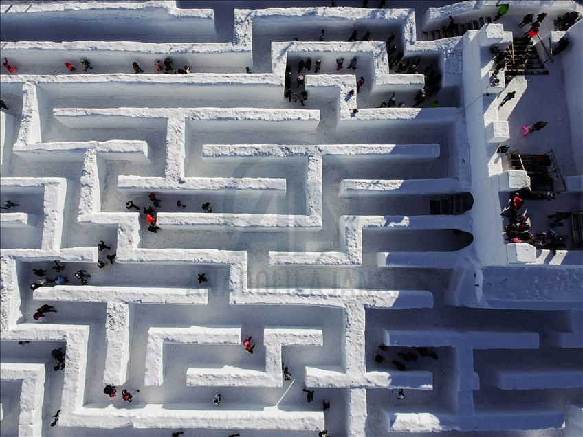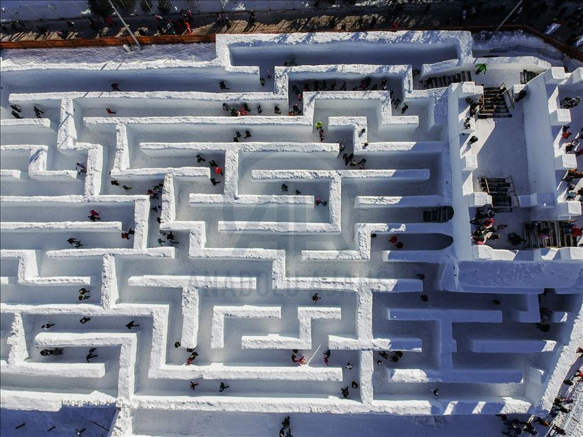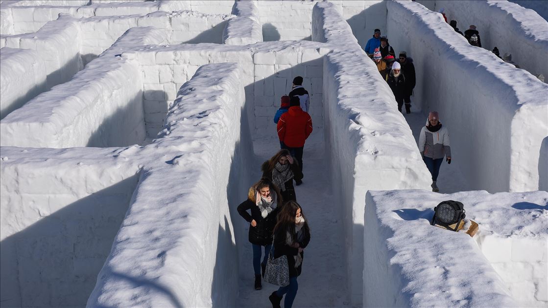 Visitors are seen as they found their way trough the biggest snow maze of the world in in Zakopane, Poland on January 29, 2020. The snow maze idea was created for the first time in the winter season of 2015/2016