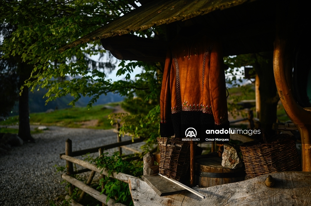 BUKOWINA TATRZANSKA, POLAND - MAY 21: A Polish shepherd clothing is seen at the entrance of the shelter at the Tatra Mountains National Park in Bukowina Tatrzanska, Poland on May 21, 2024. Cultural grazing is a pastoral economy carried out in national parks, permitted under numerous restrictions. It is also a form of protection of the mountain landscape and a unique way of transmitting and perpetuating pastoral traditions. The best known is cultural grazing carried out in 30 clearings in the Tatra National Park. Shepherding has been added to the UNESCO's Intangible Cultural Heritage list meaning that the native tradition of shepherding and sheep grazing will be cultivated, maintained and, above all, protected. ( Omar Marques - Anadolu Agency )Omar Marques