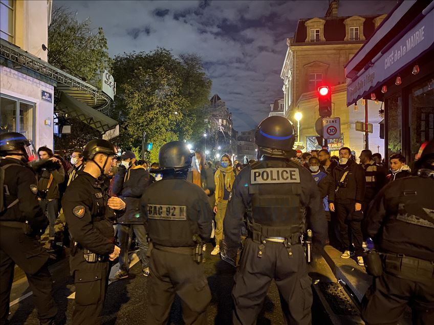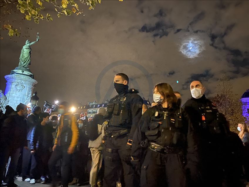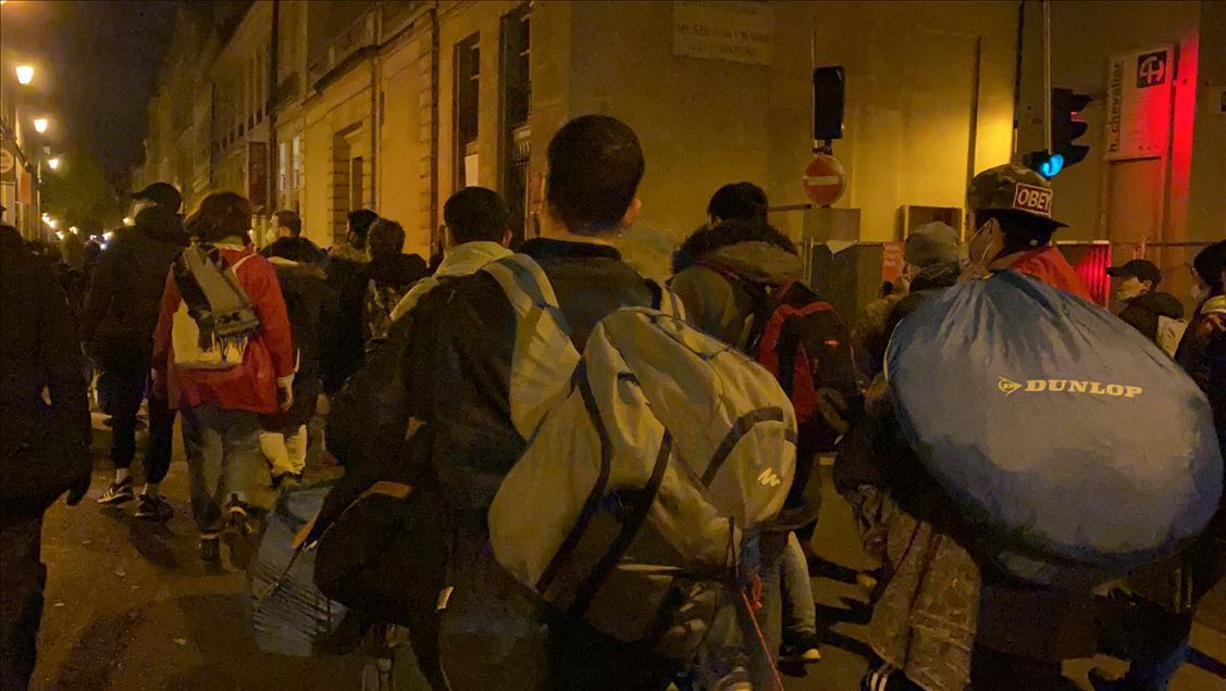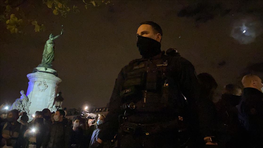 PARIS, FRANCE - NOVEMBER 23: Police and gendarmerie officers intervene in refugees who came to Republique Square in the evening hours and set up camp, on November 23, 2020 in Paris, France. Security forces, which moved the refugees away from the square, intervened those who fled in the streets with tear gas and did not allow them to come together. Hundreds of refugees, mostly Afghan, evacuated from migrant camp last week, near the Stade de France in Saint-Denis, by a police operation.