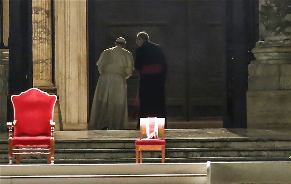 Ceremony normally held at Colosseum was taken to deserted Saint Peter’s Square