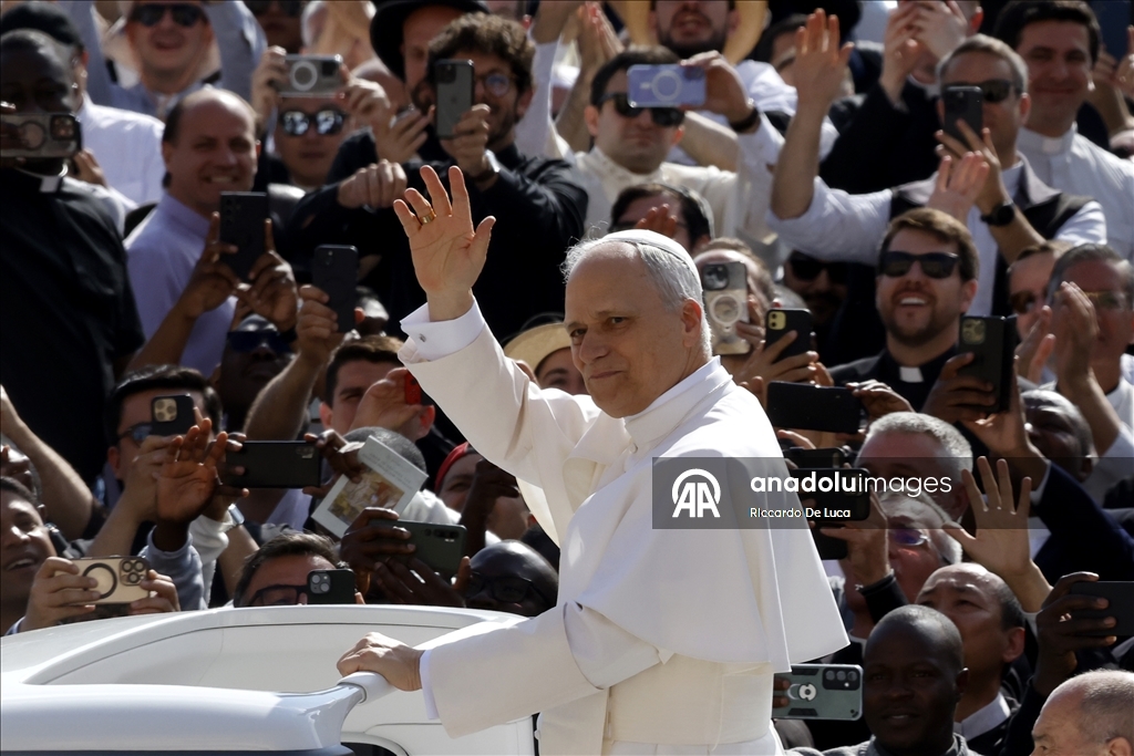 VATICAN CITY, VATICAN, MAY 18: Pope Leo XIV arrives, greets the public before the Mass for the inauguration of his pontificate in St. Peter's Square at the Vatican, on May 18, 2025. ( Riccardo De Luca - Anadolu Agency )Riccardo De Luca