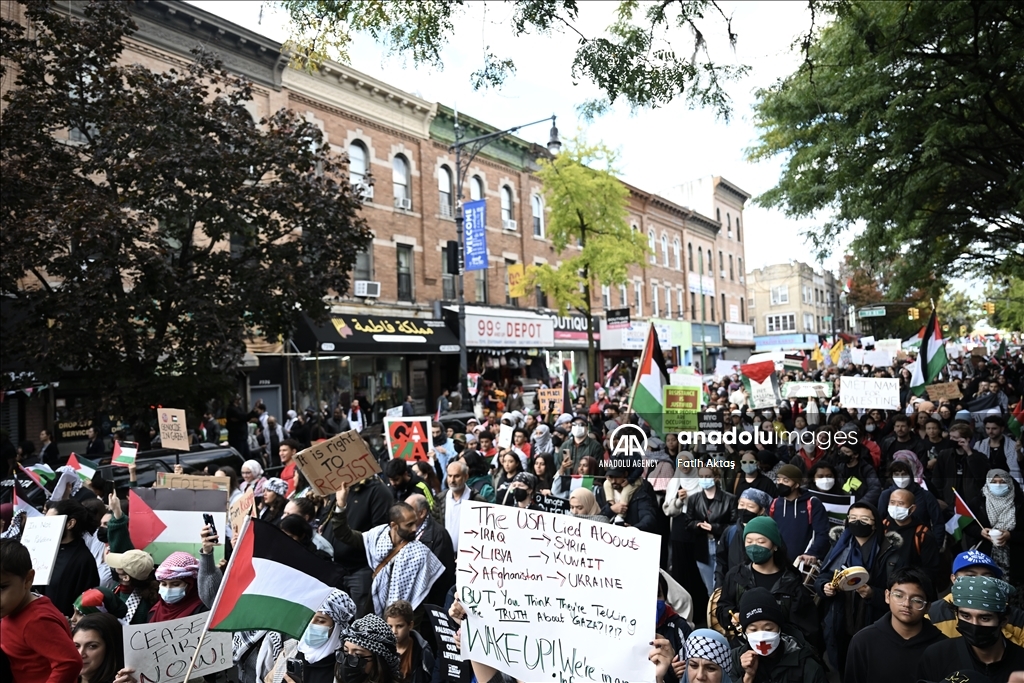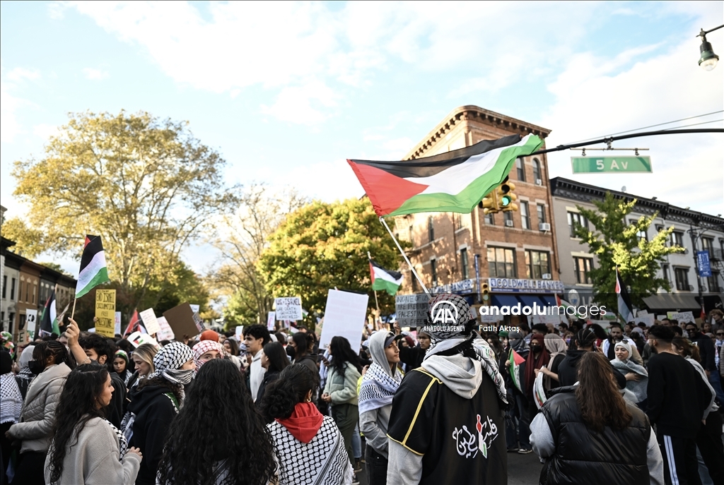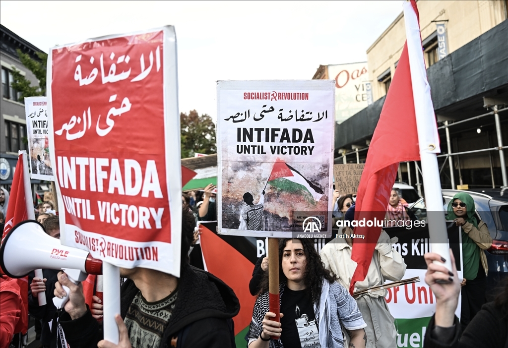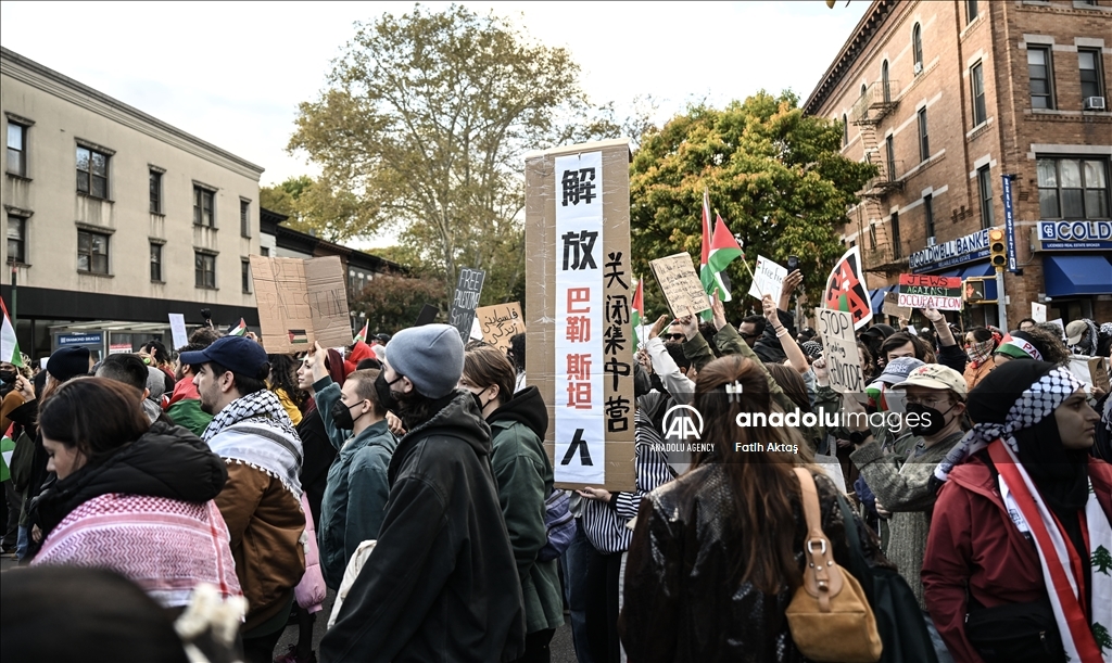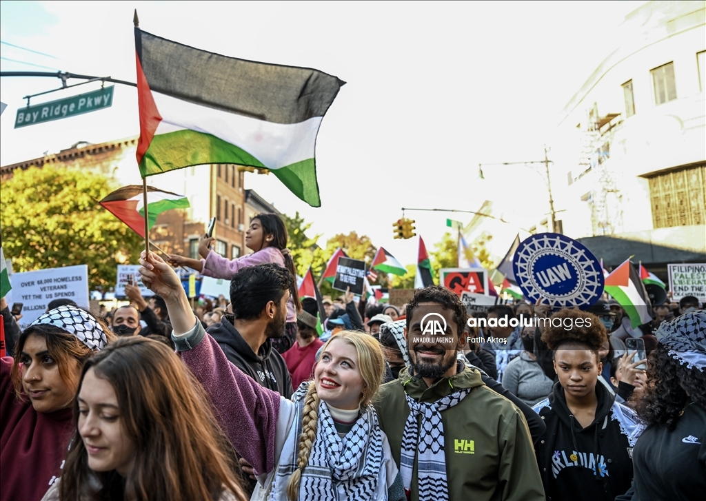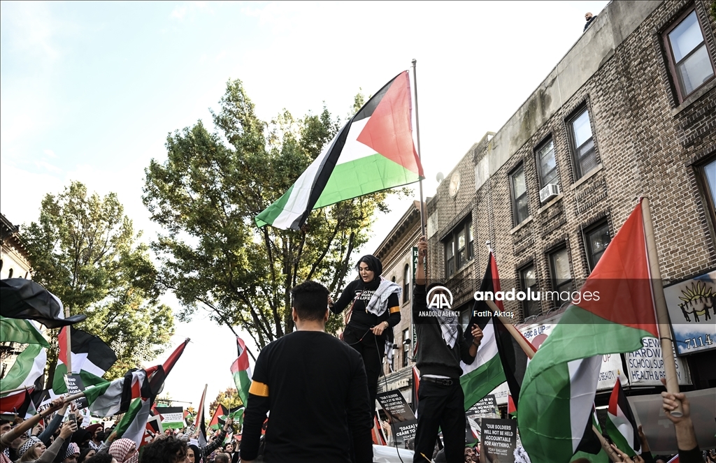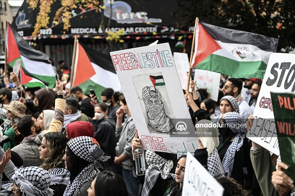 NEW YORK, UNITED STATES - OCTOBER 21: People take part in a demonstration in support of Palestinian people, in New York, United States on October 21, 2023. ( Fatih Aktaş - Anadolu Agency )Fatih Aktaş
