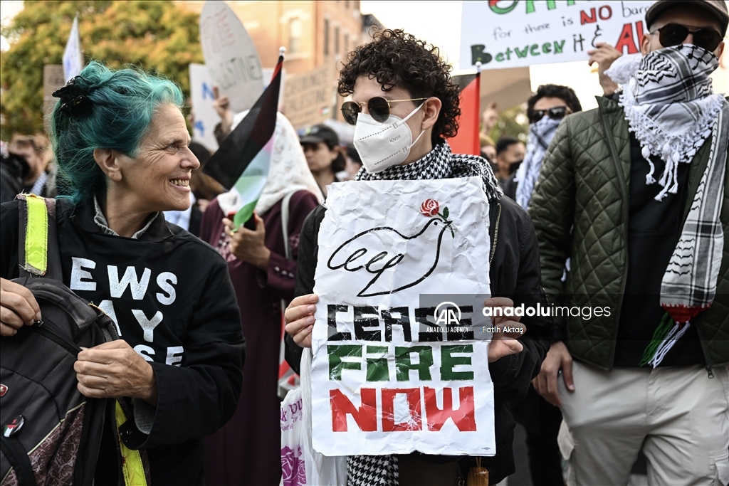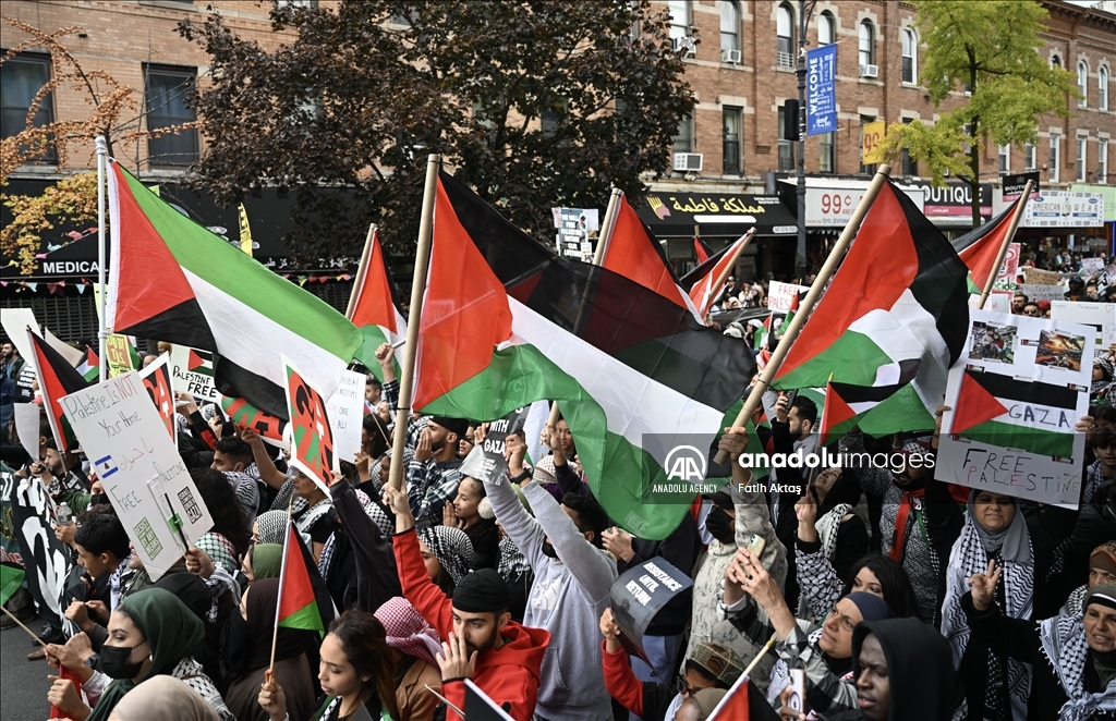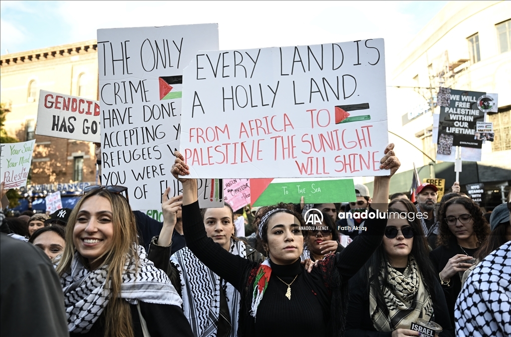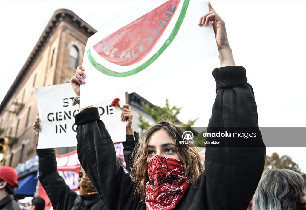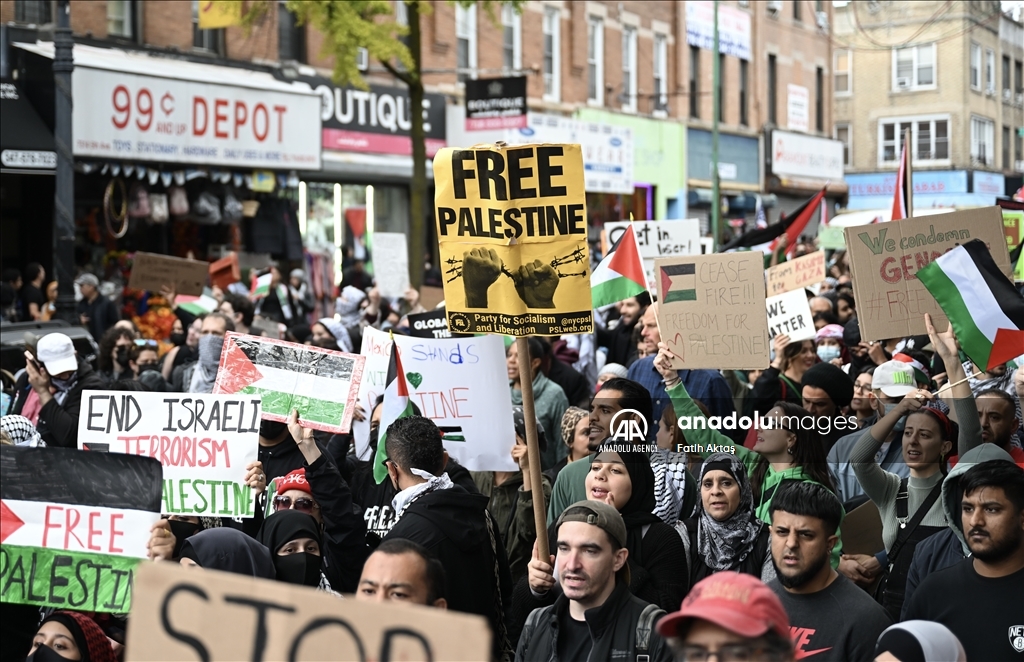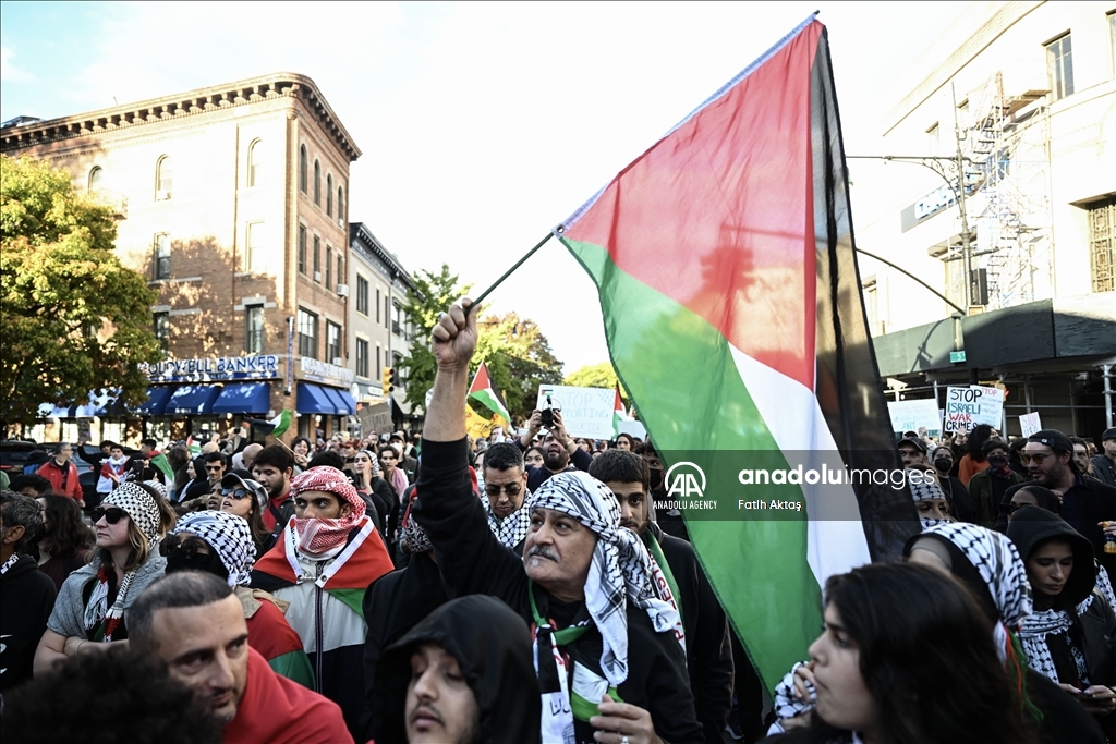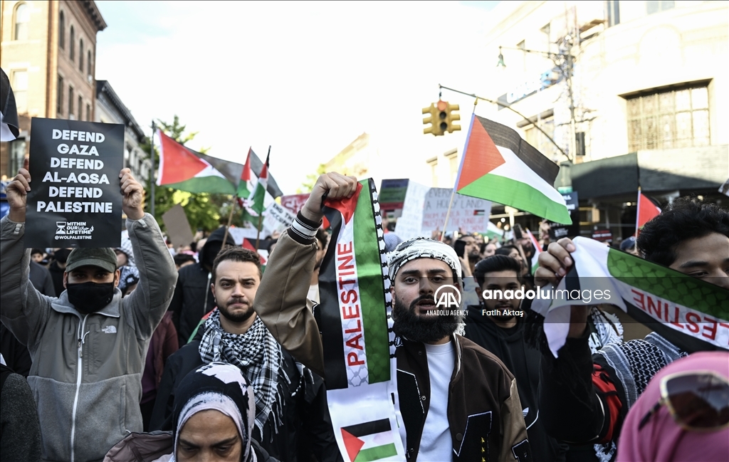 NEW YORK, UNITED STATES - OCTOBER 21: People take part in a demonstration in support of Palestinian people, in New York, United States on October 21, 2023. ( Fatih Aktaş - Anadolu Agency )Fatih Aktaş