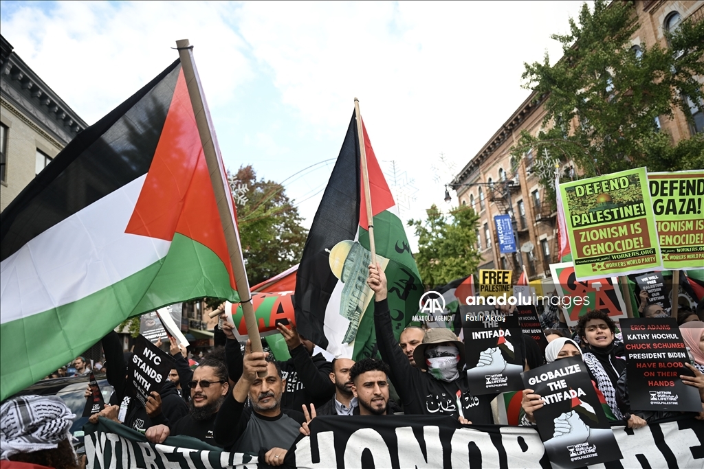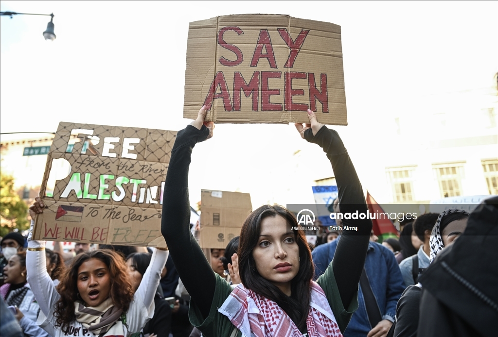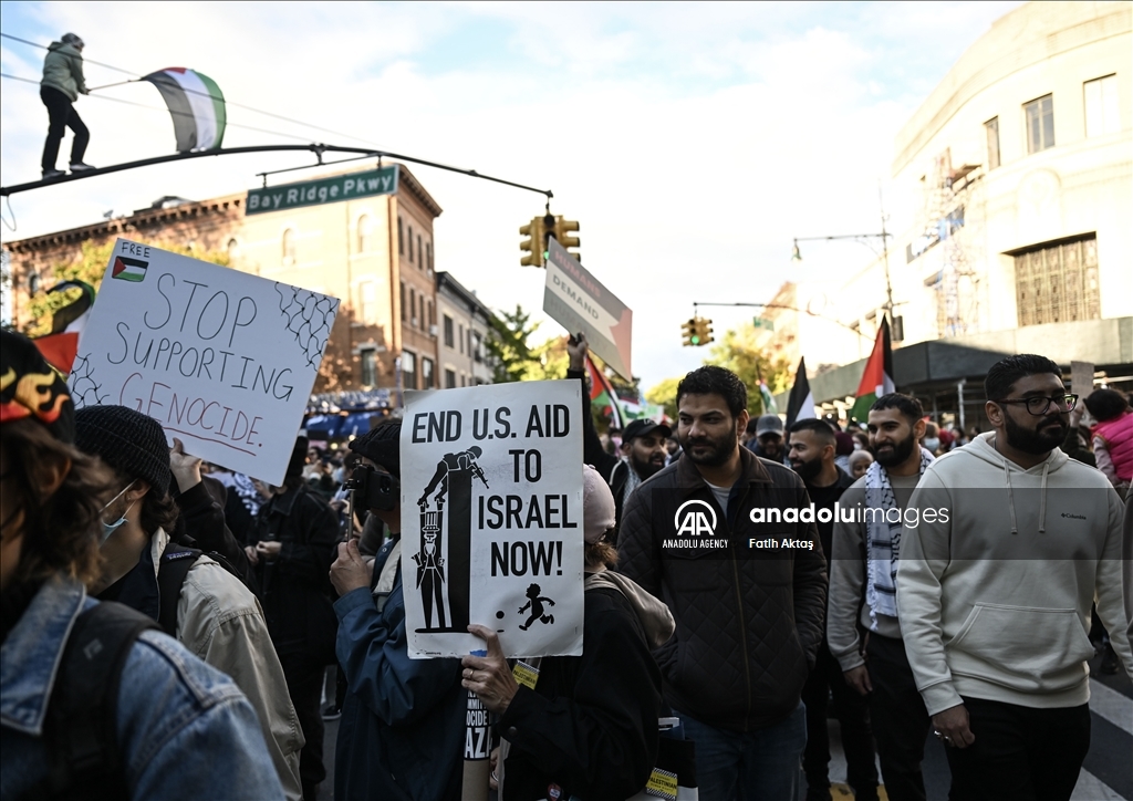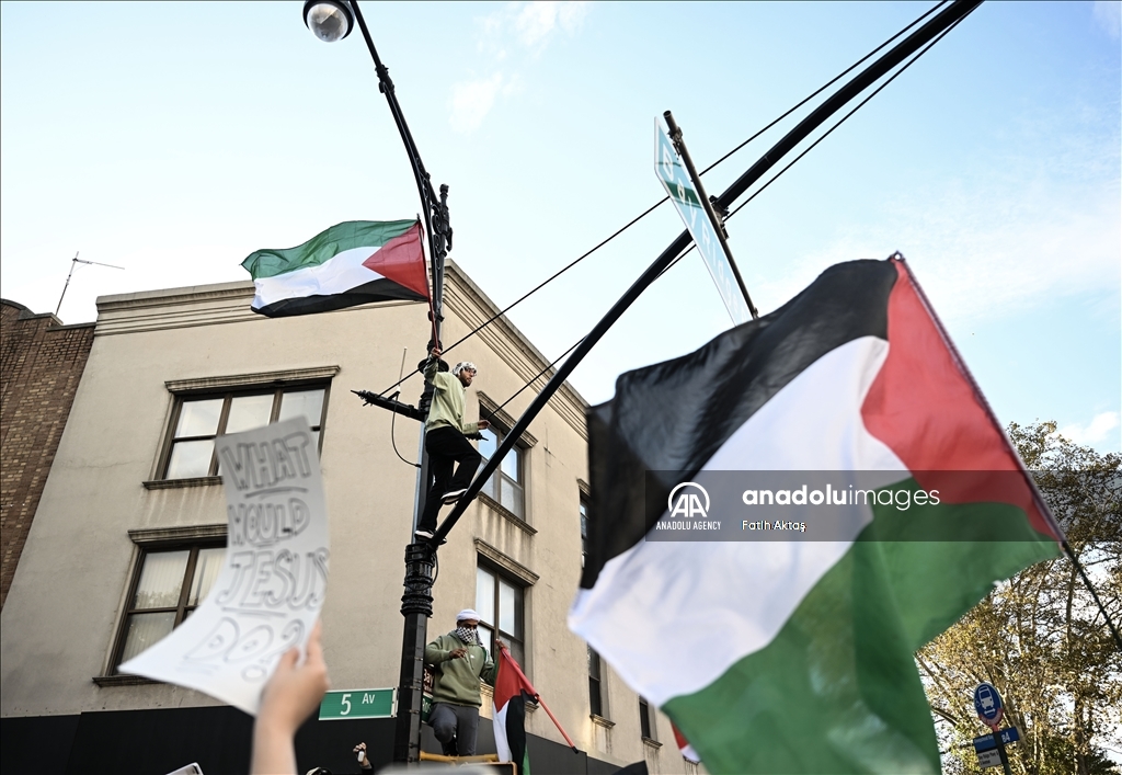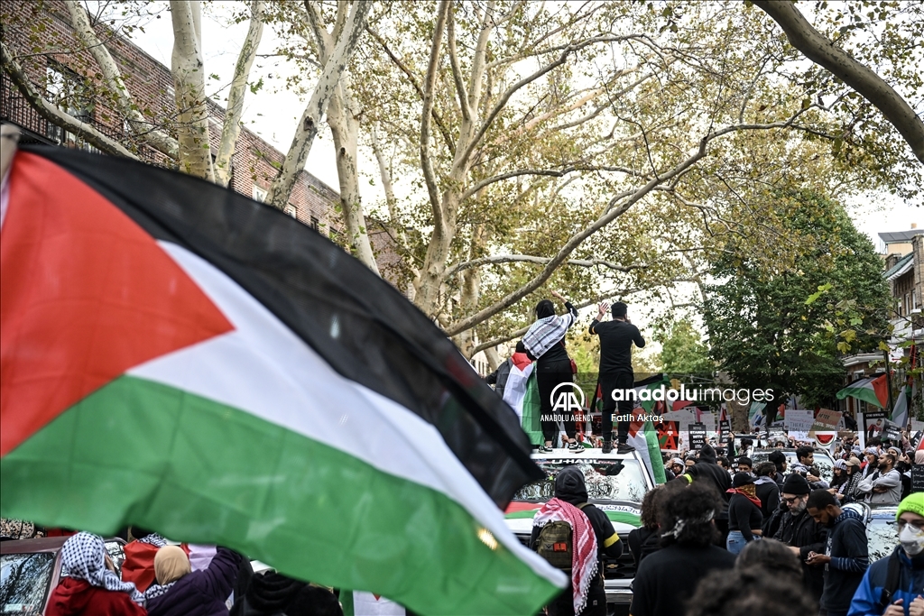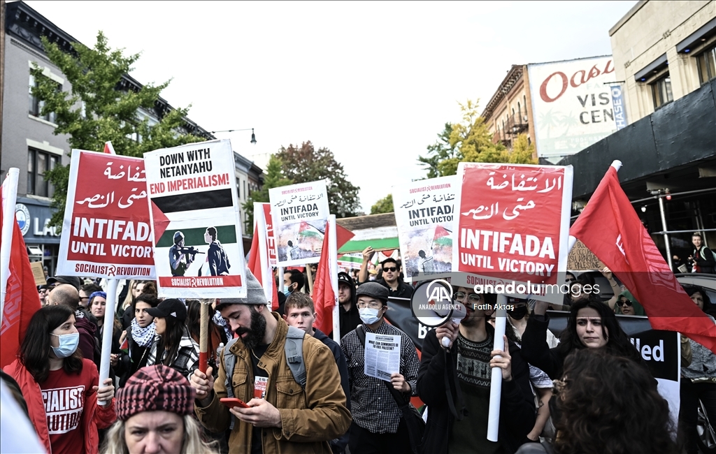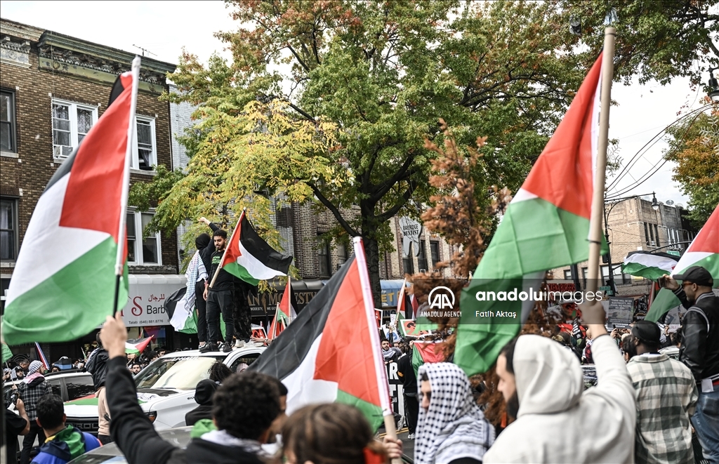 NEW YORK, UNITED STATES - OCTOBER 21: People take part in a demonstration in support of Palestinian people, in New York, United States on October 21, 2023. ( Fatih Aktaş - Anadolu Agency )Fatih Aktaş