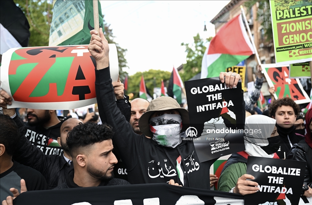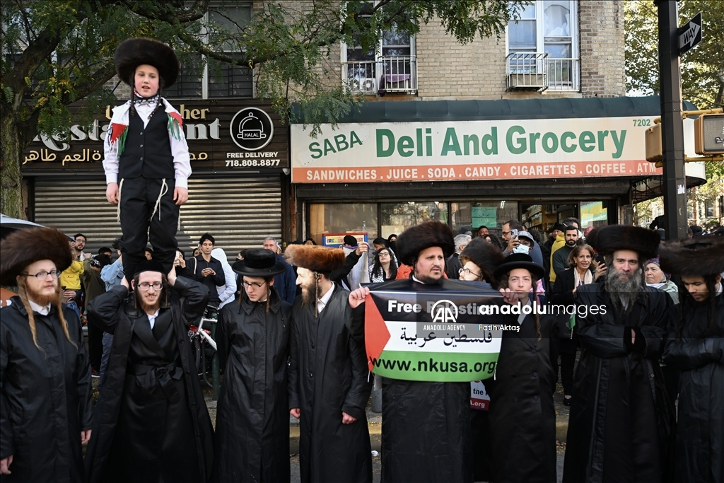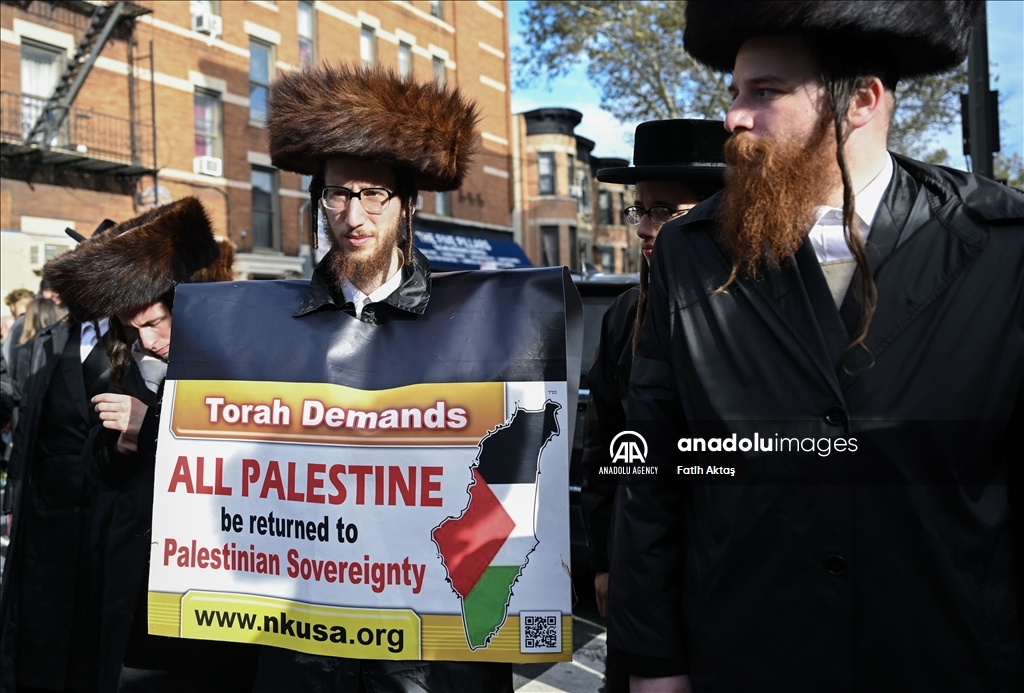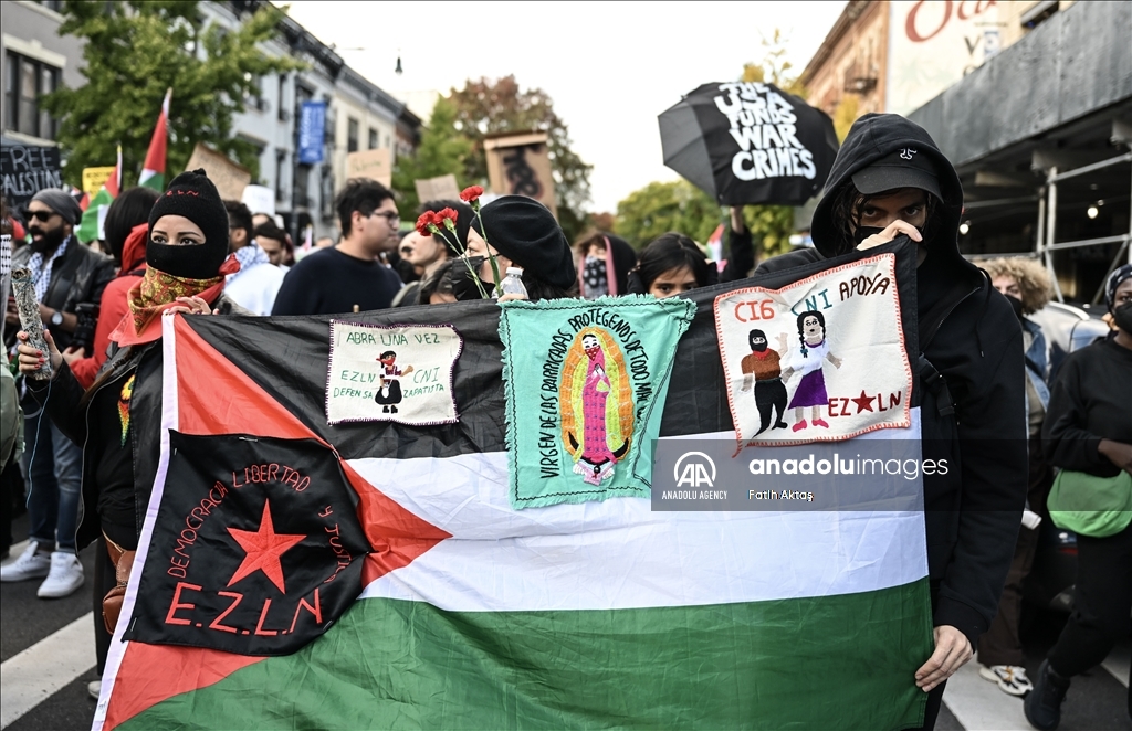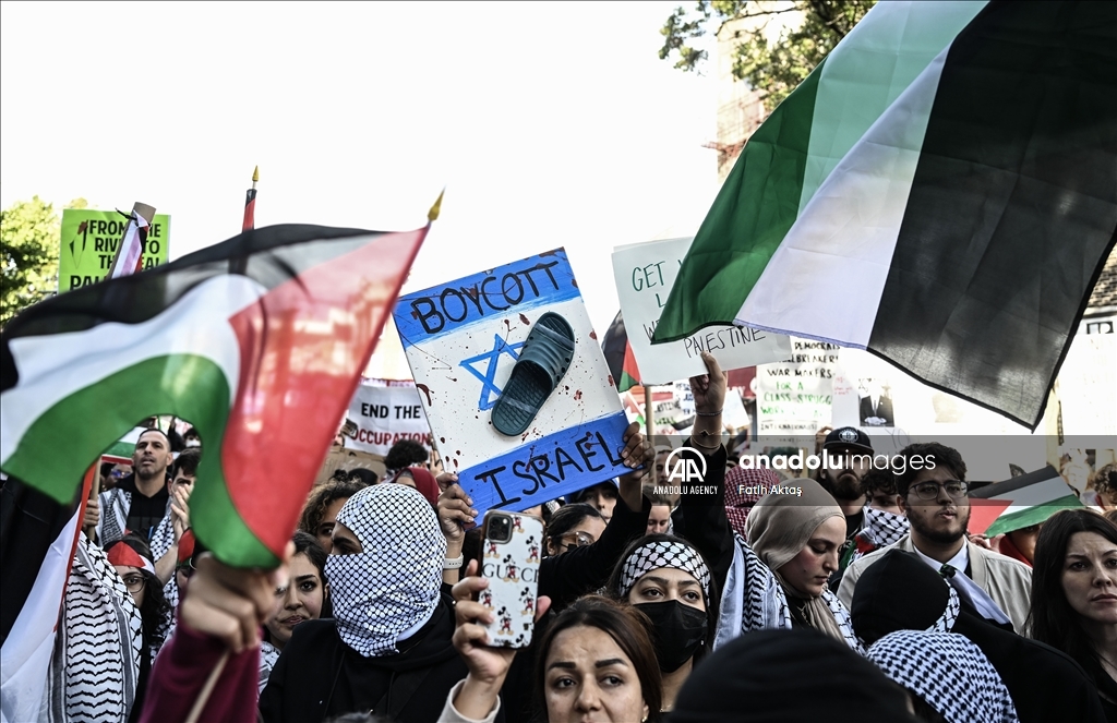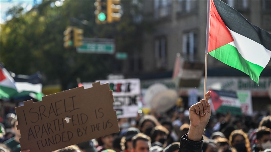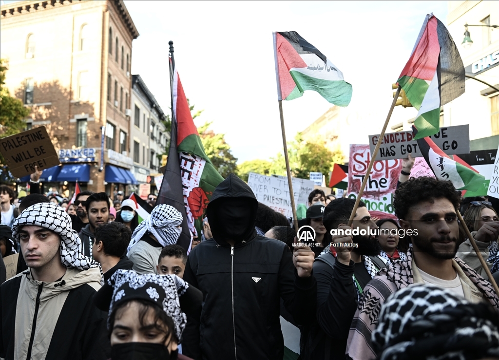 NEW YORK, UNITED STATES - OCTOBER 21: People take part in a demonstration in support of Palestinian people, in New York, United States on October 21, 2023. ( Fatih Aktaş - Anadolu Agency )Fatih Aktaş