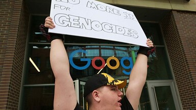 People take part in a demonstration in New York, US in support of the Palestinian people