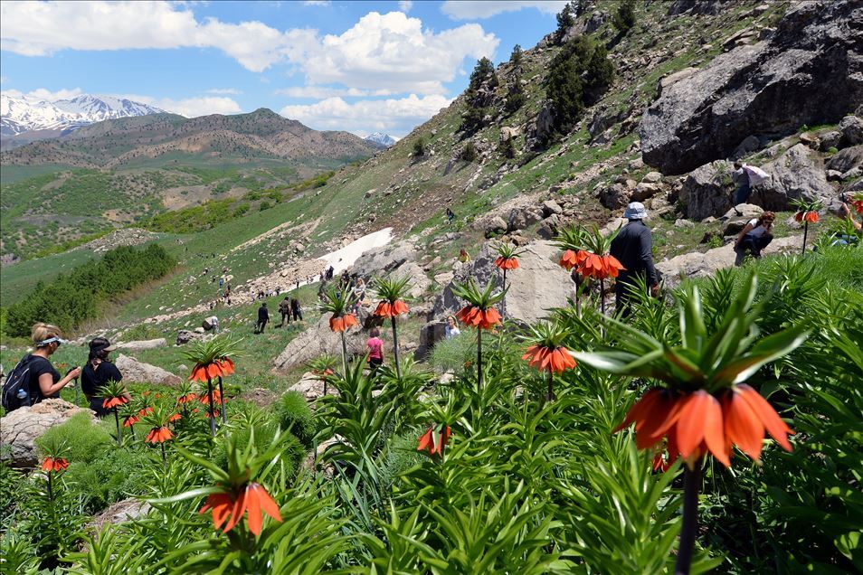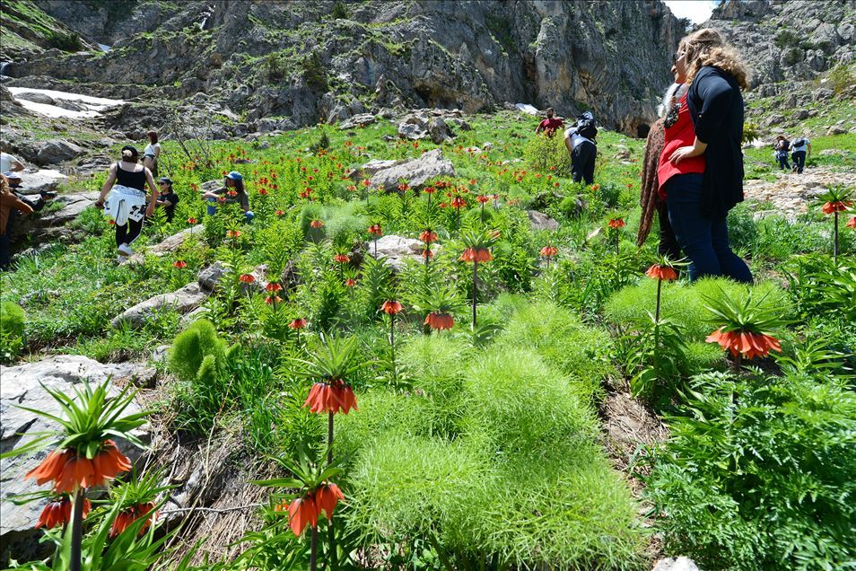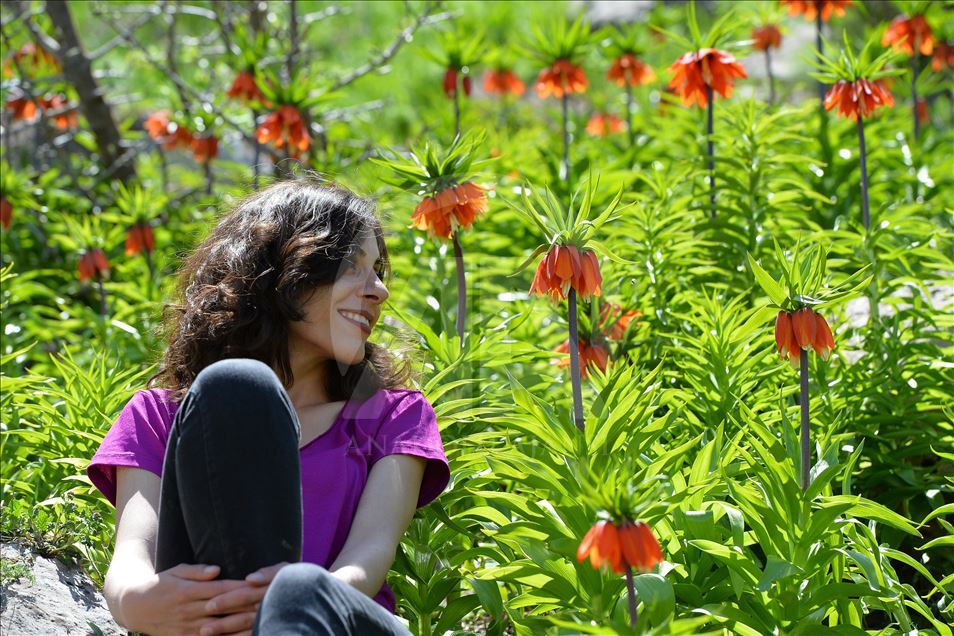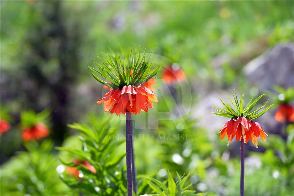 Reverse tulips (fritillaria imperialis) decorate mountains in the eastern Turkish province of Tunceli. Reverse tulips, also known as "crying bride", grow especially on the high and rocky areas in the Eastern Anatolia region during spring.