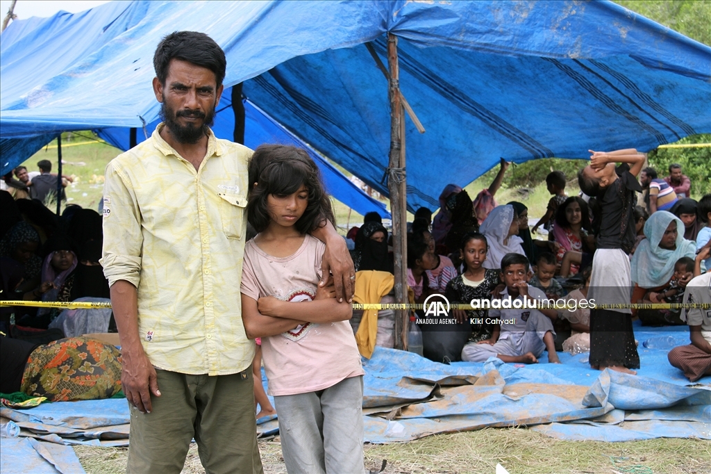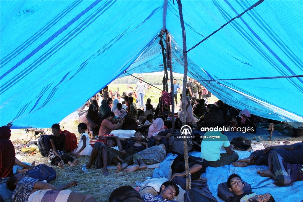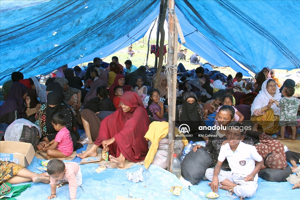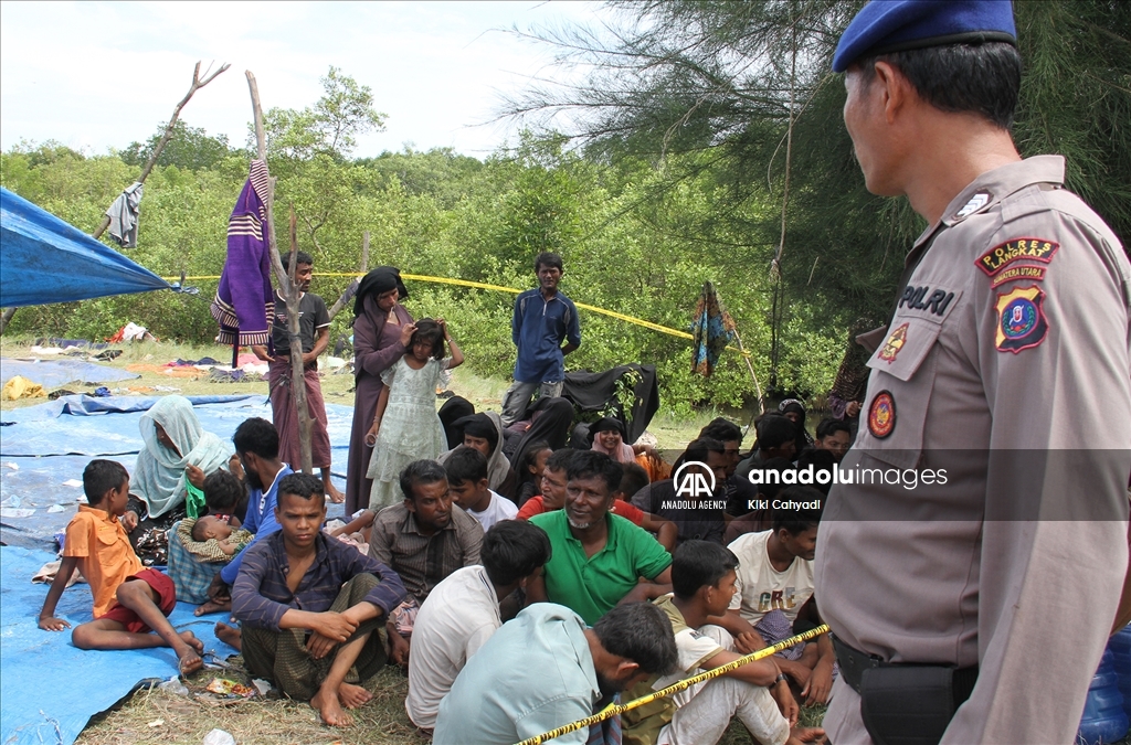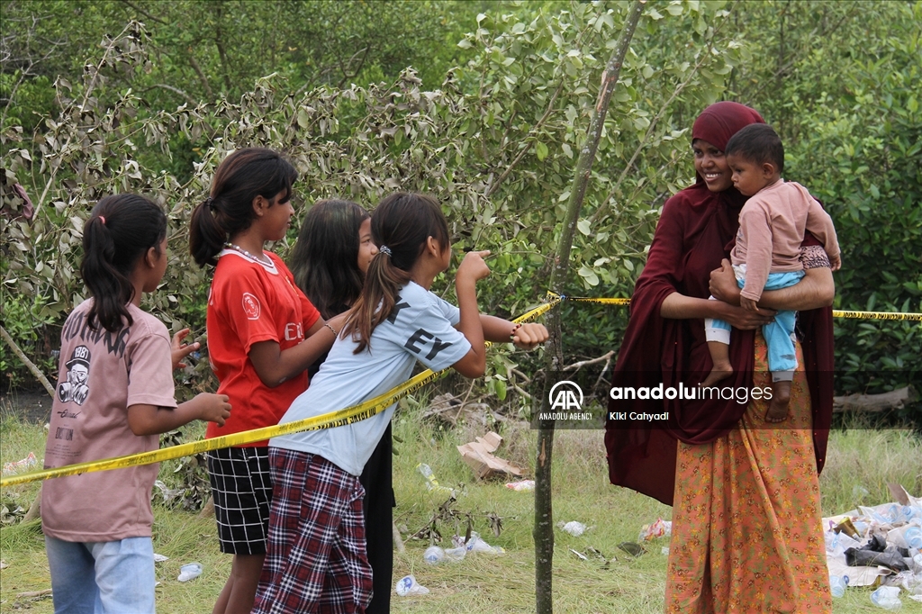 NORTH SUMATRA, INDONESIA - JANUARY 01: A number of Rohingya immigrants gather in emergency tents after being stranded at Karang Gading Village in Labuhan Deli, Deli Serdang Regency, North Sumatra, Indonesia on January 1, 2024. A total of 147 Rohingya ethnic immigrants were stranded in the waters of Karang Gading Village on Saturday. ( Kiki Cahyadi - Anadolu Agency )Kiki Cahyadi
