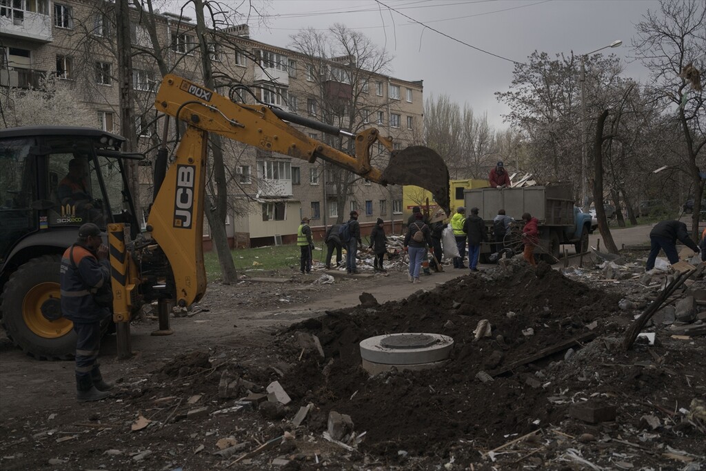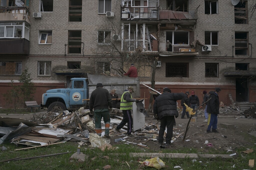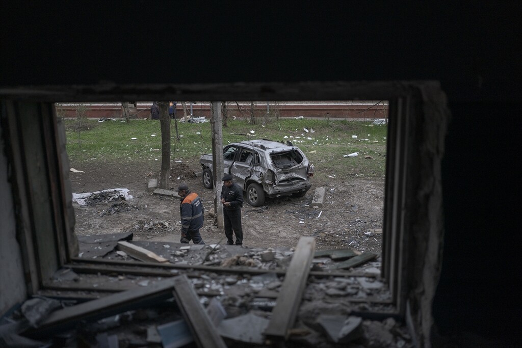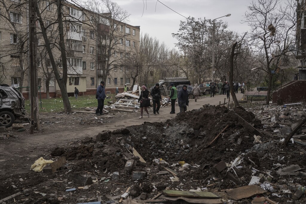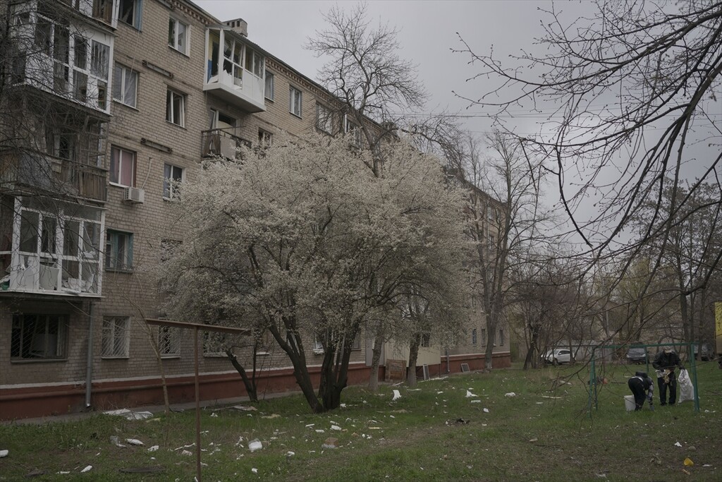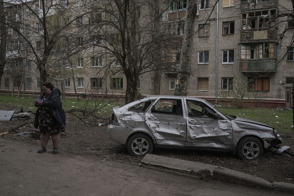 A view of the aftermath following a Russian attack with a Shahed-type drone on a residential area in Kramatorsk, Ukraine on April 14, 2026.