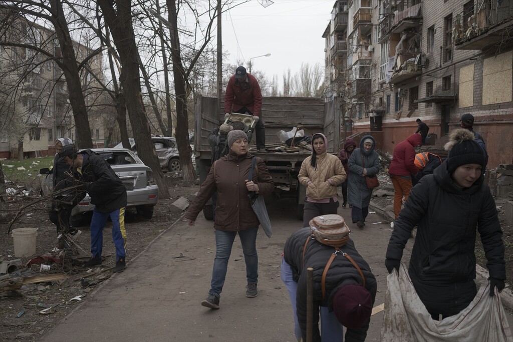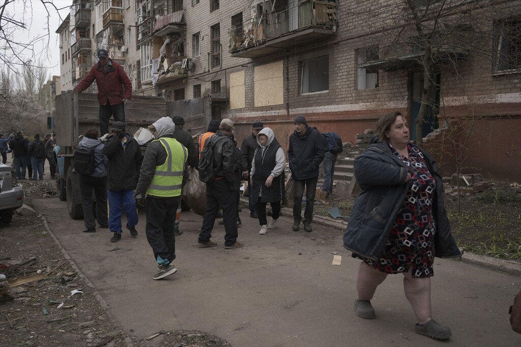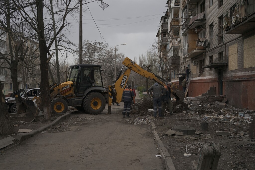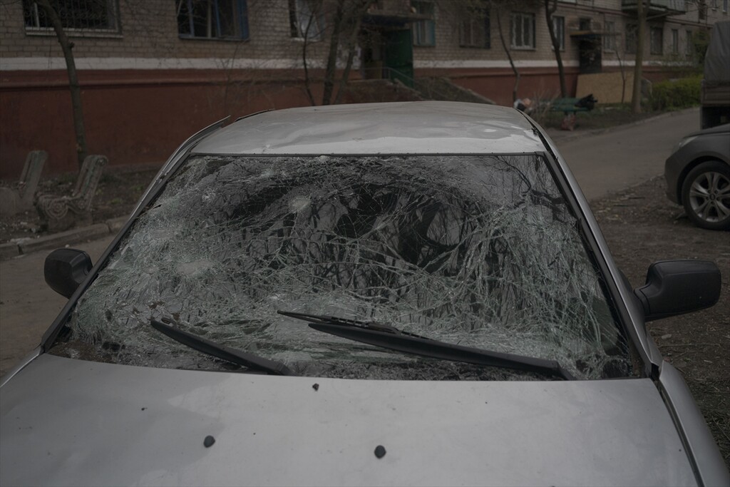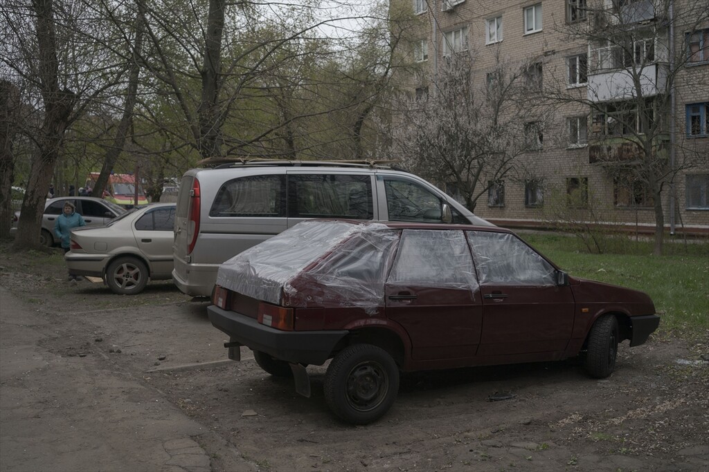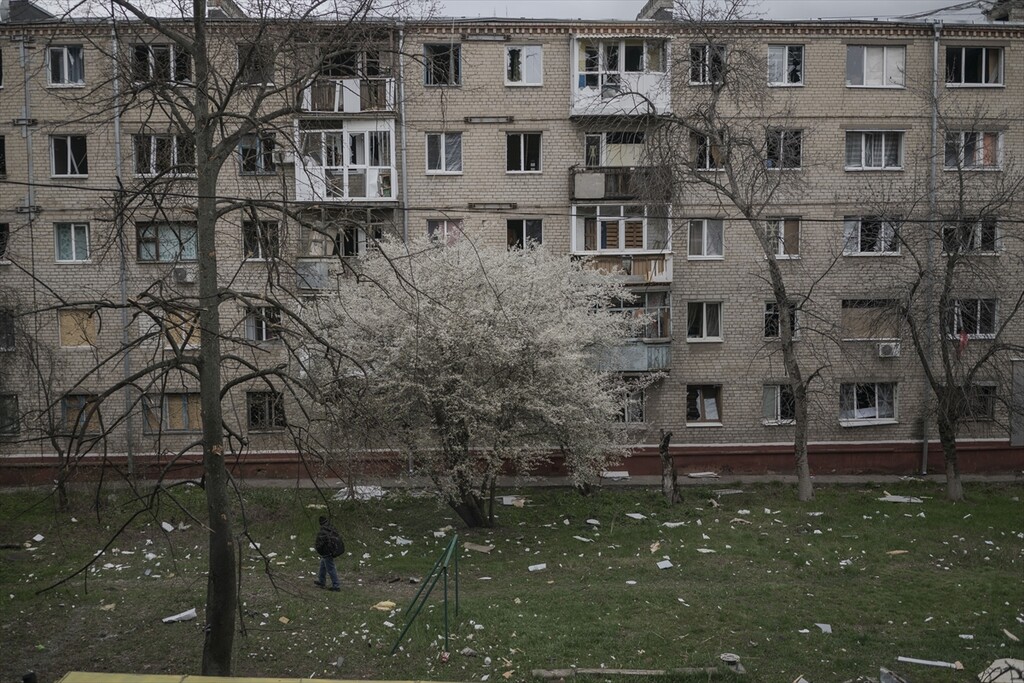 A view of the aftermath following a Russian attack with a Shahed-type drone on a residential area in Kramatorsk, Ukraine on April 14, 2026.
