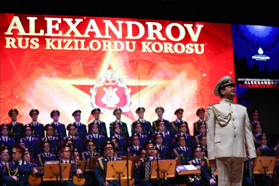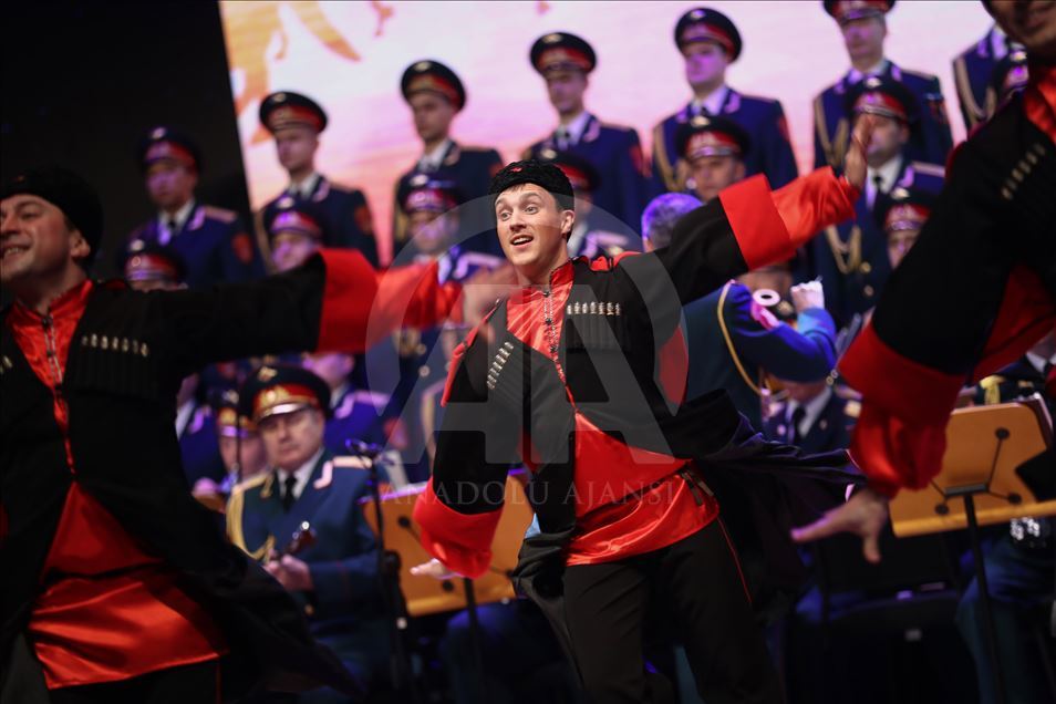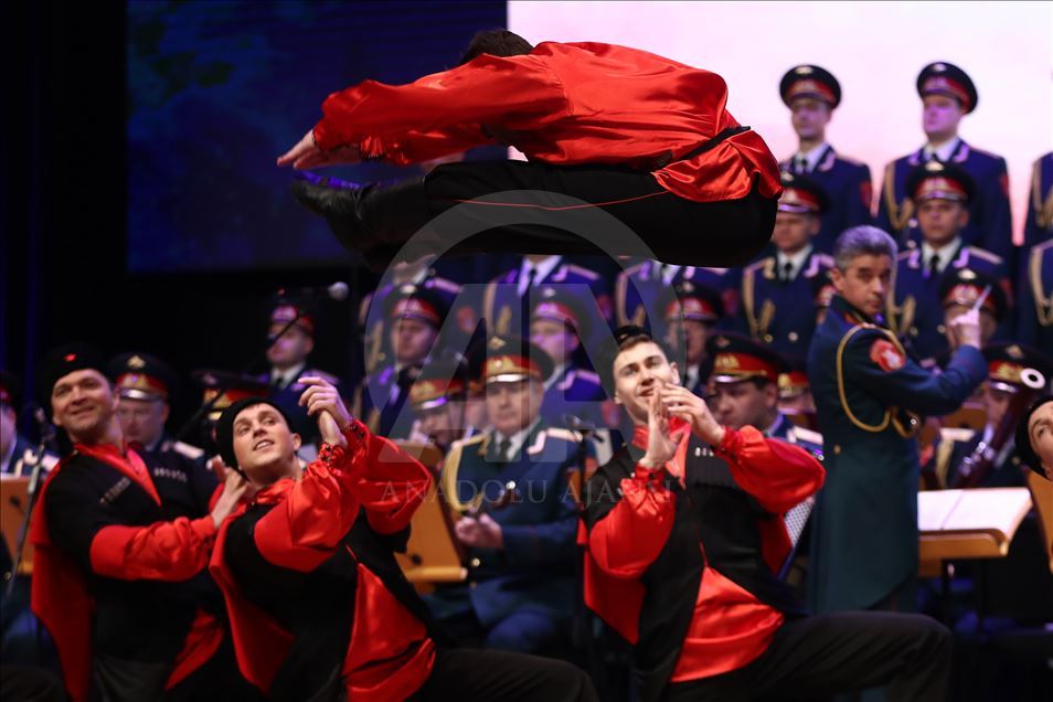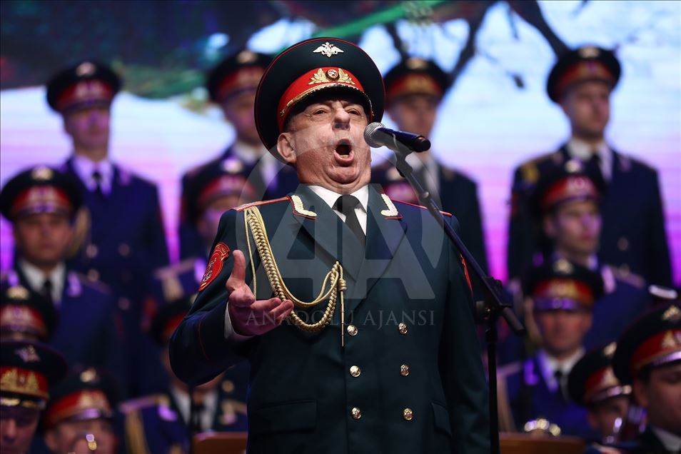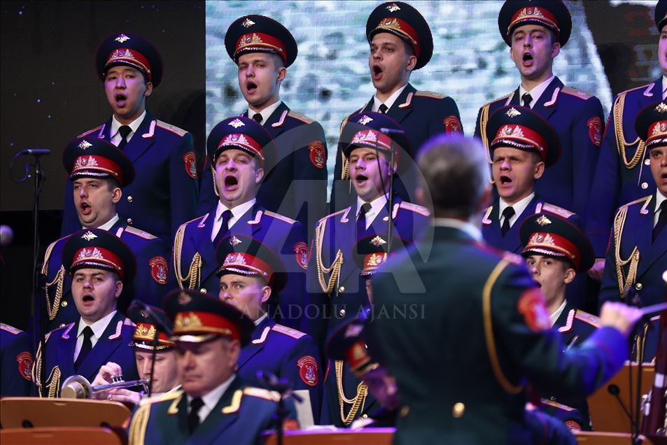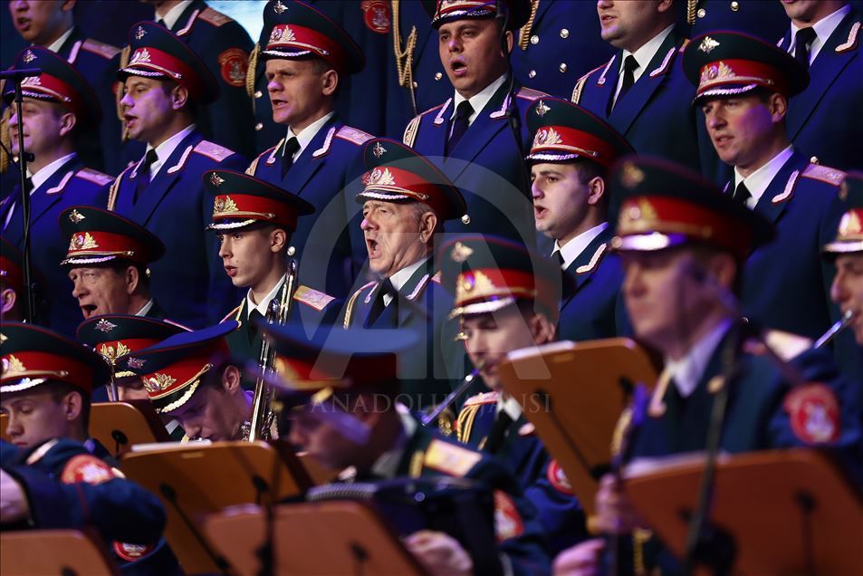 Russian Alexandrov Red Army choir band, the official army choir of the Russian Armed Forces, perform in Istanbul, Turkey on March 10, 2019.