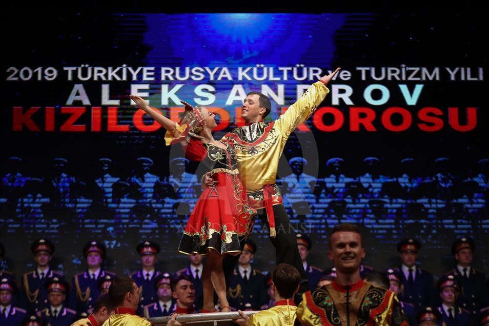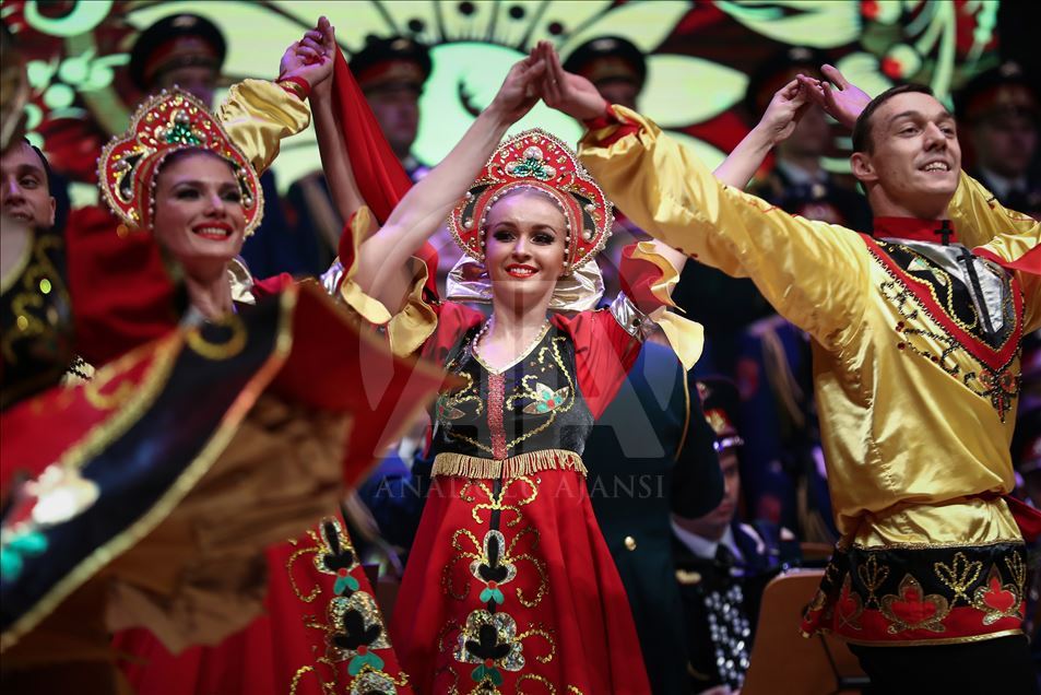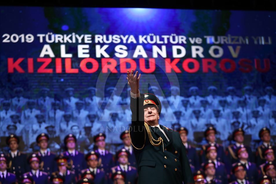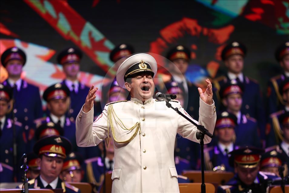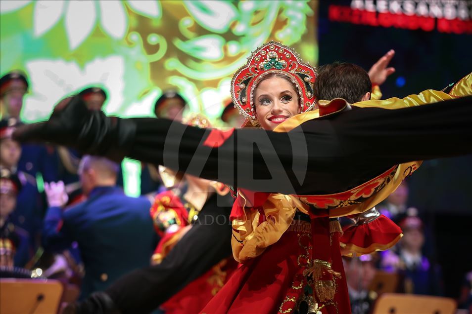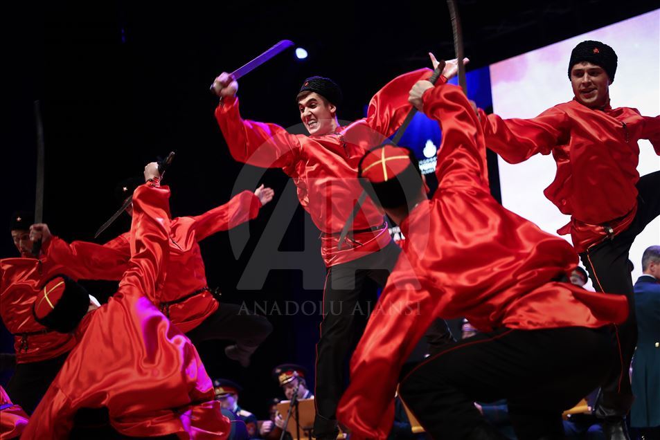 Russian Alexandrov Red Army choir band, the official army choir of the Russian Armed Forces, perform in Istanbul, Turkey on March 10, 2019.