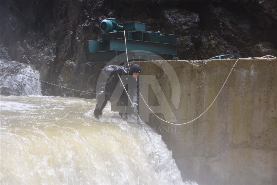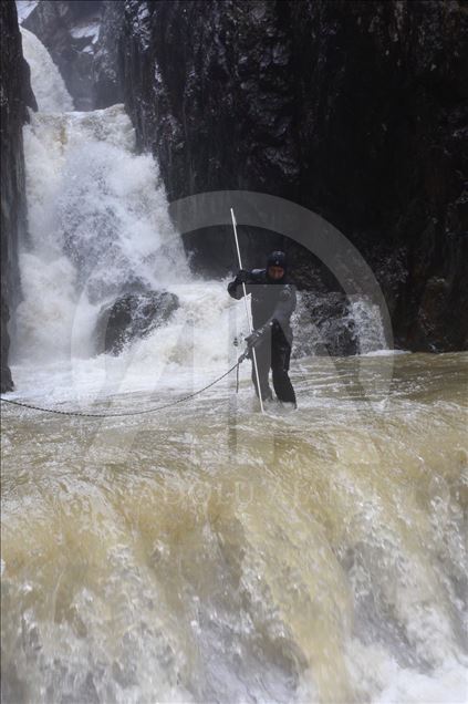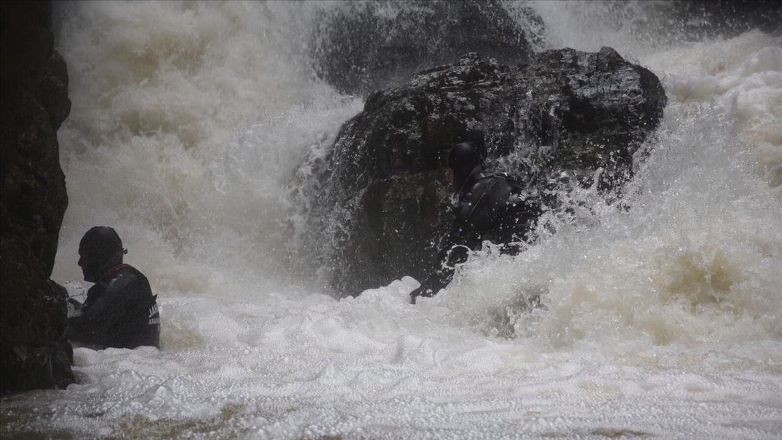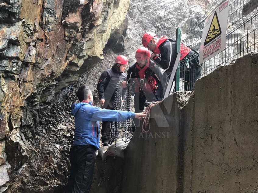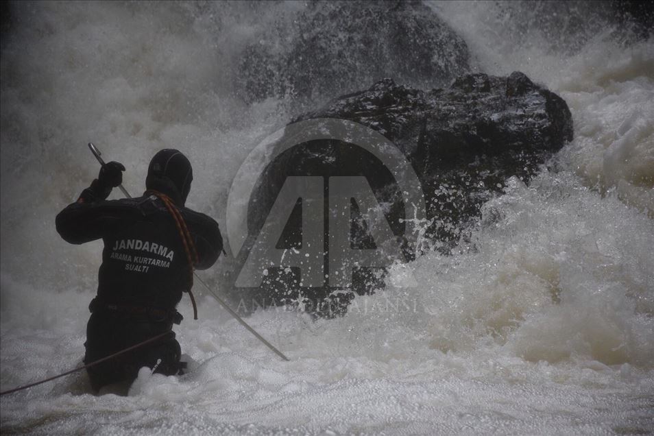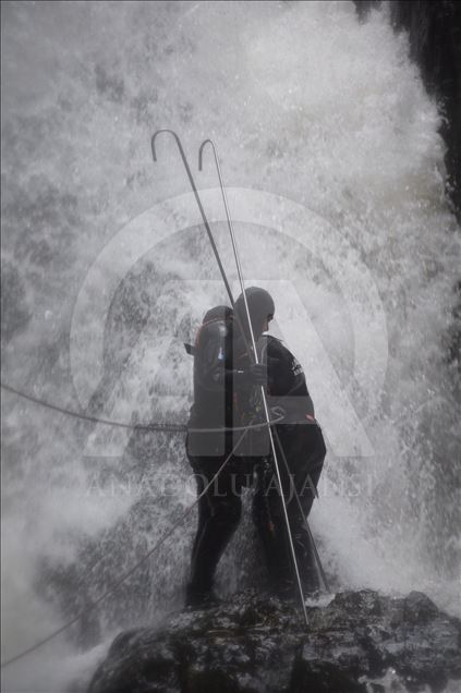 Search mission, carried out for Anadolu Agency Bayburt reporter Abdulkadir Nisanci, continues by Underwater Search and Rescue Unit, around the valley where Abdulkadir Nisanci's shoes were found near the Derebasi tunnel, in Bayburt, Turkey on May 12, 2019.