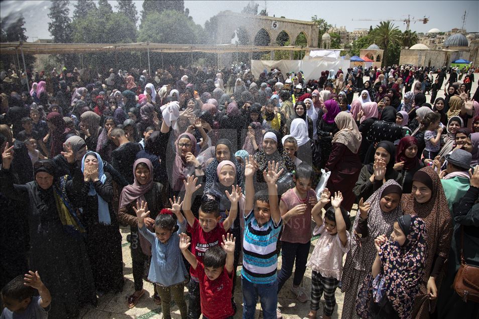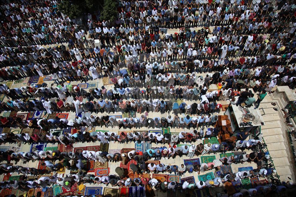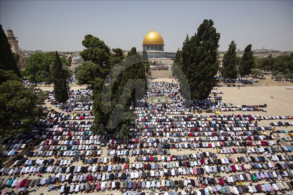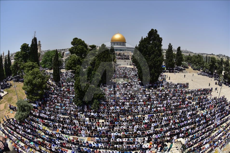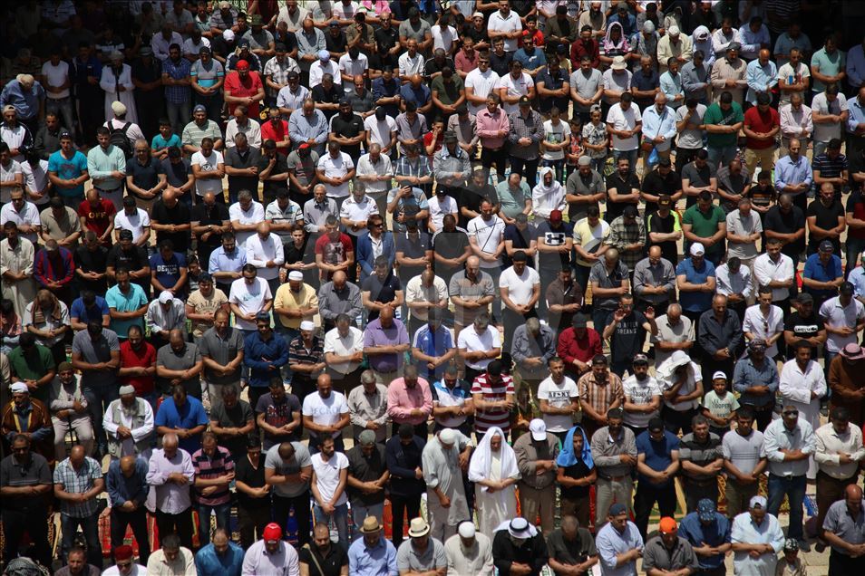 Palestinians perform the second Friday Prayer of Islamic holy month of Ramadan at the Al-Aqsa Mosque, in Ramallah, West Bank on May 17, 2019. The passing of Palestinian men, who are under age 40, haven't been allowed by the Israeli forces.