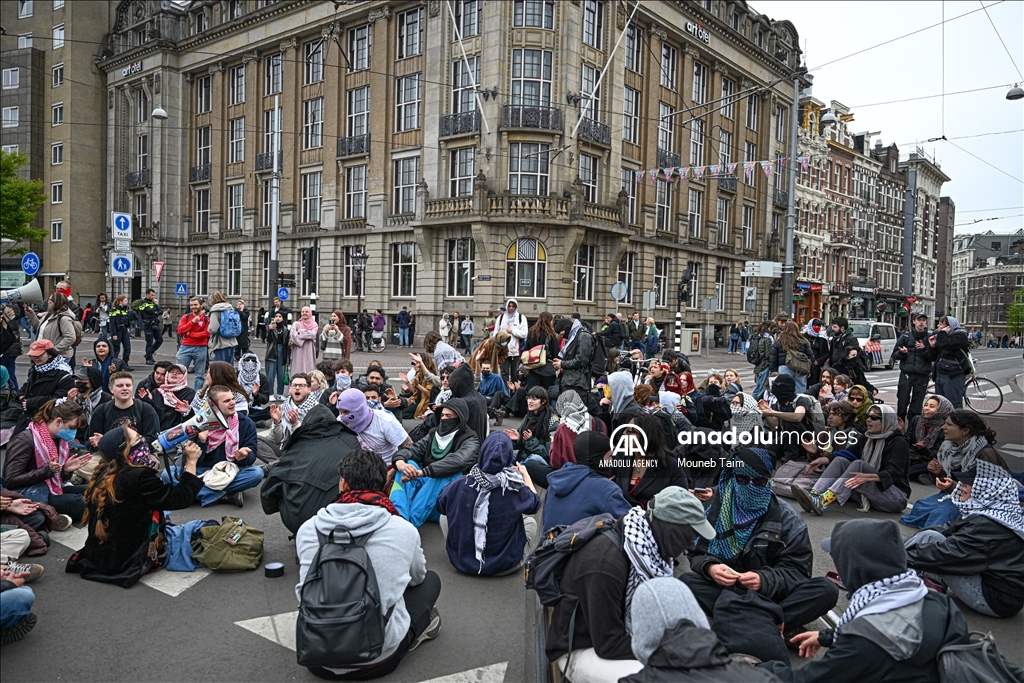 Sit-in protest in Amsterdam solidarity with Palestinians and detained students