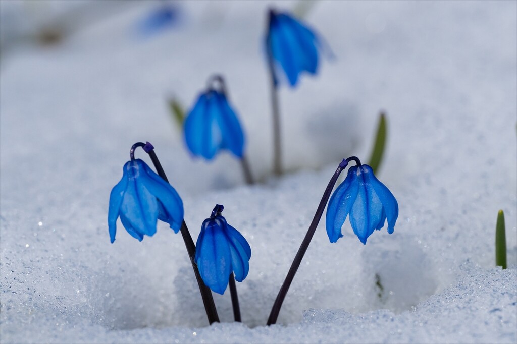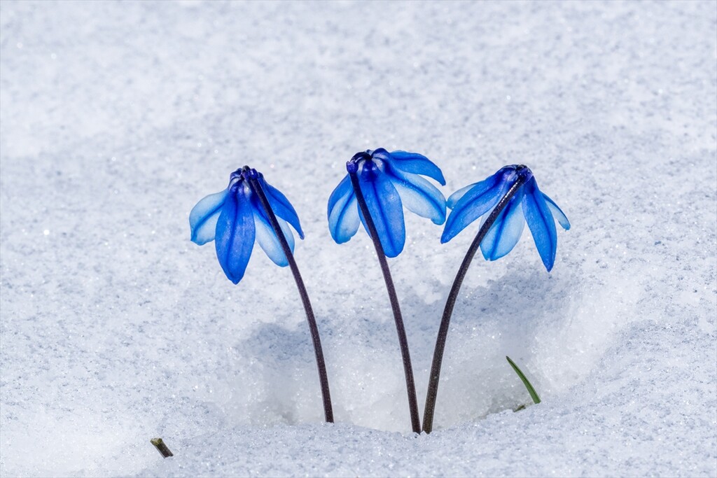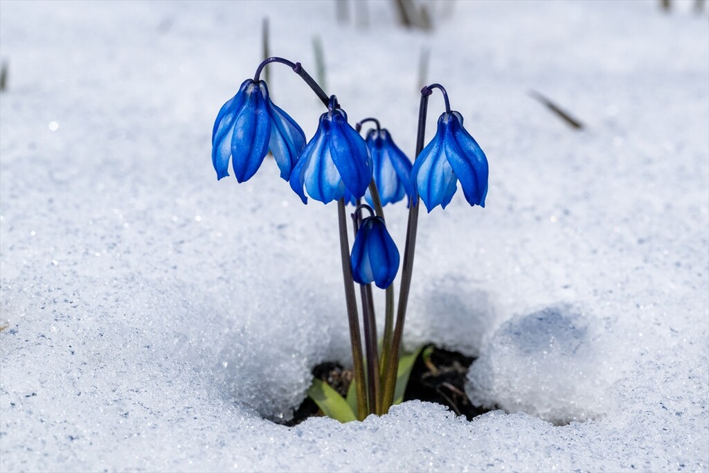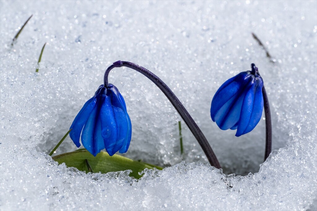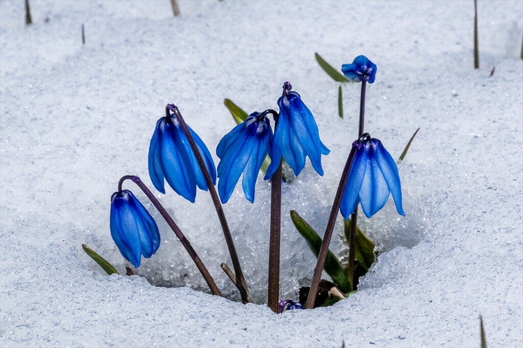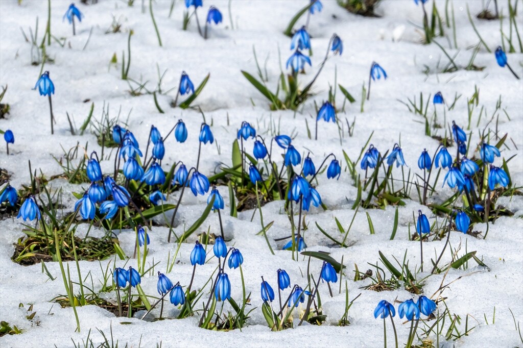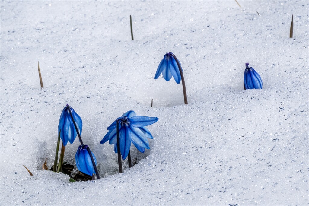 Flowers are seen amid snow as nature revives after a cold winter in Kars, Turkiye on April 25, 2026.
