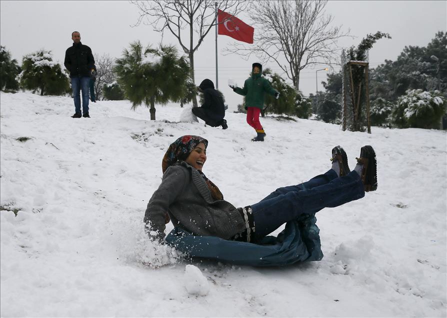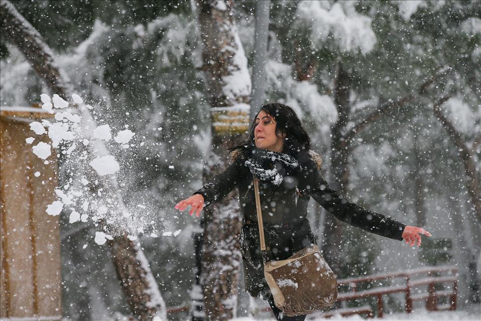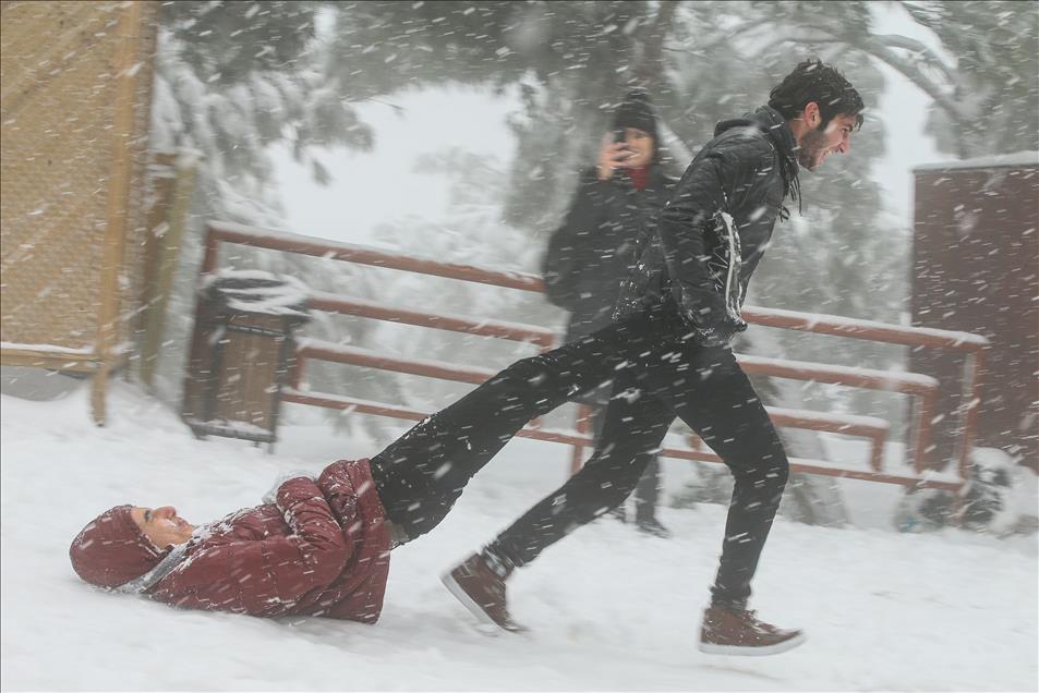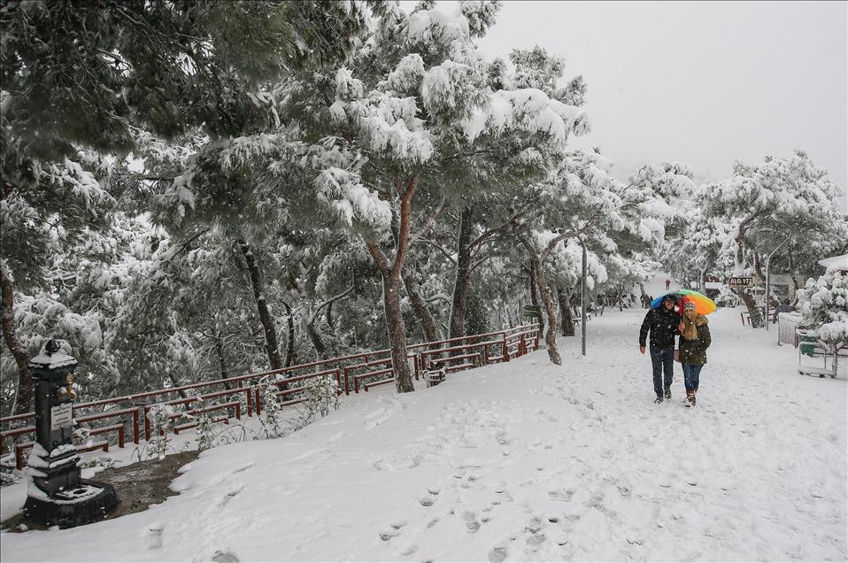 IZMIR, TURKEY - JANUARY 10: People enjoy the snow during snowfall in Izmir, Turkey on January 10, 2017. ( Emin Mengüarslan - Anadolu Agency )Emin Mengüarslan