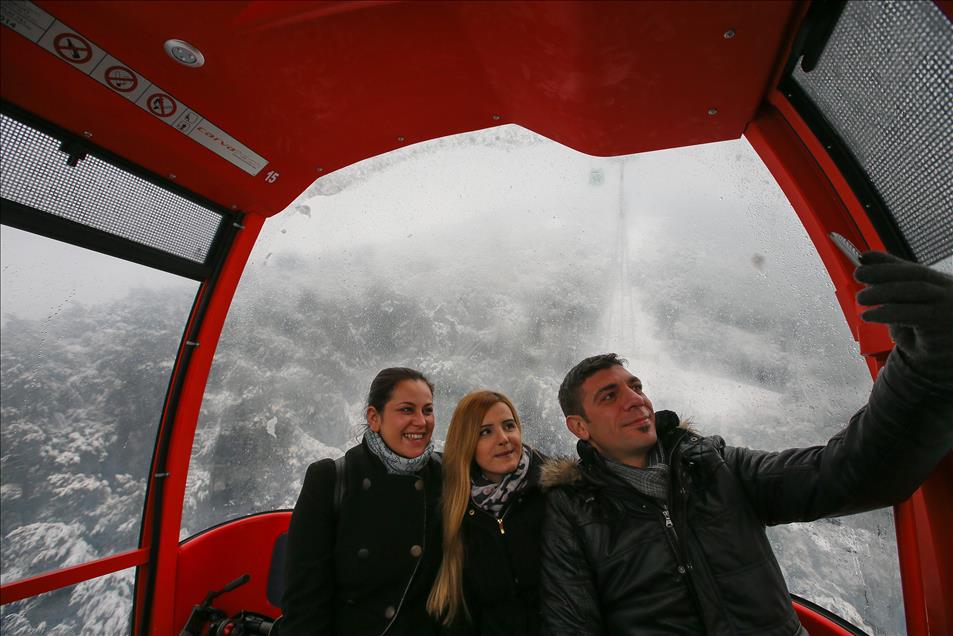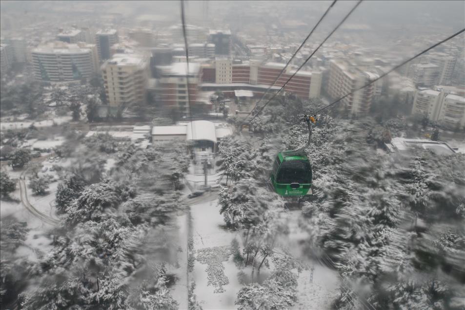IZMIR, TURKEY - JANUARY 10: People take a cable car to take photos during snowfall in Izmir, Turkey on January 10, 2017. ( Emin Mengüarslan - Anadolu Agency )Emin Mengüarslan