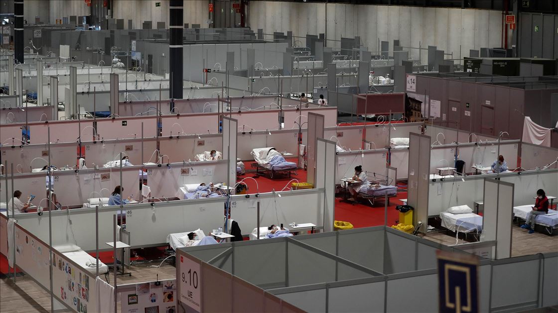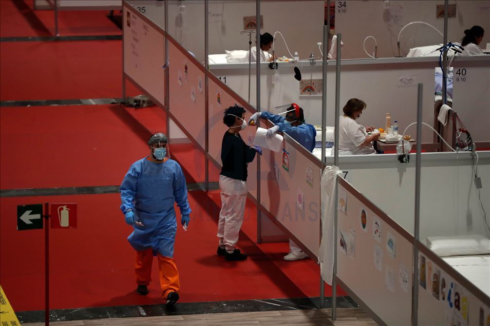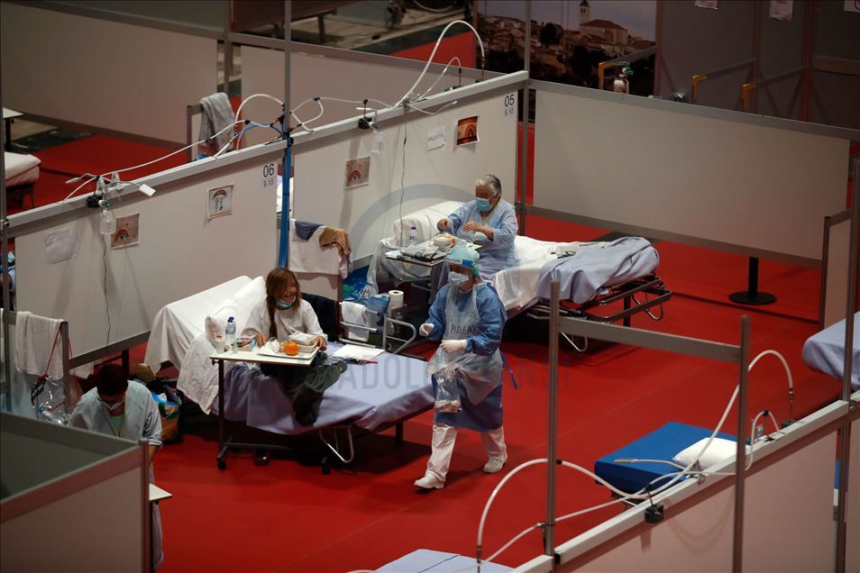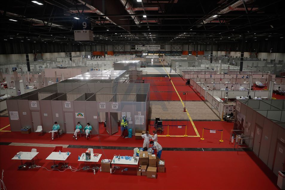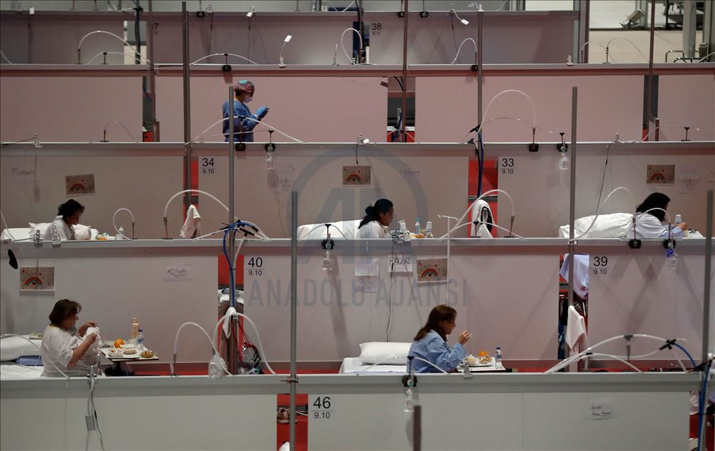 A general view of IFEMA field hospital adapted from a convention and fair center in order to alleviate the burden of the hospitals due to the novel coronavirus (COVID-19) pandemic is seen in Madrid, Spain on April 21, 2020.