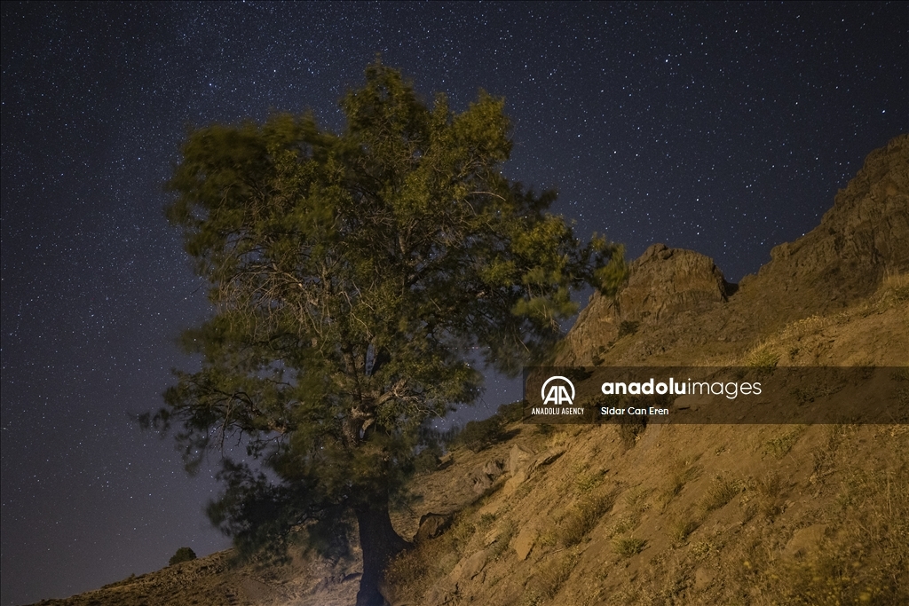 TUNCELI, TURKIYE - AUGUST 06: A long exposure photo shows starry night shining over a tree at an altitude of 2,097 meters on Duzgin Bawo Mountain at Nazimiye district of Tunceli, Turkiye on August 06, 2024. ( Sidar Can Eren - Anadolu Agency )Sidar Can Eren