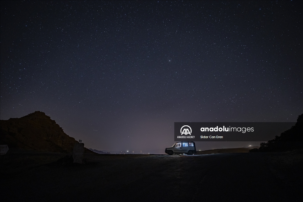 TUNCELI, TURKIYE - AUGUST 06: A long exposure photo shows starry night shining over a car at an altitude of 2,097 meters on Duzgin Bawo Mountain at Nazimiye district of Tunceli, Turkiye on August 06, 2024. ( Sidar Can Eren - Anadolu Agency )Sidar Can Eren