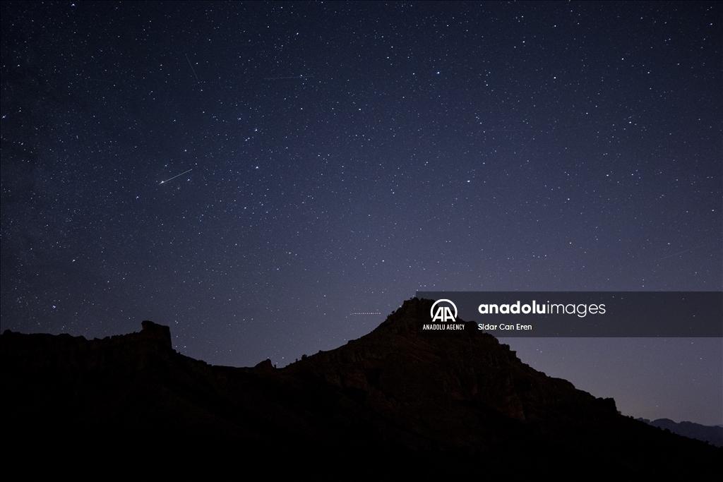 TUNCELI, TURKIYE - AUGUST 06: A long exposure photo shows starry night shining as meteor streaking the sky, at an altitude of 2,097 meters on Duzgin Bawo Mountain at Nazimiye district of Tunceli, Turkiye on August 06, 2024. ( Sidar Can Eren - Anadolu Agency )Sidar Can Eren