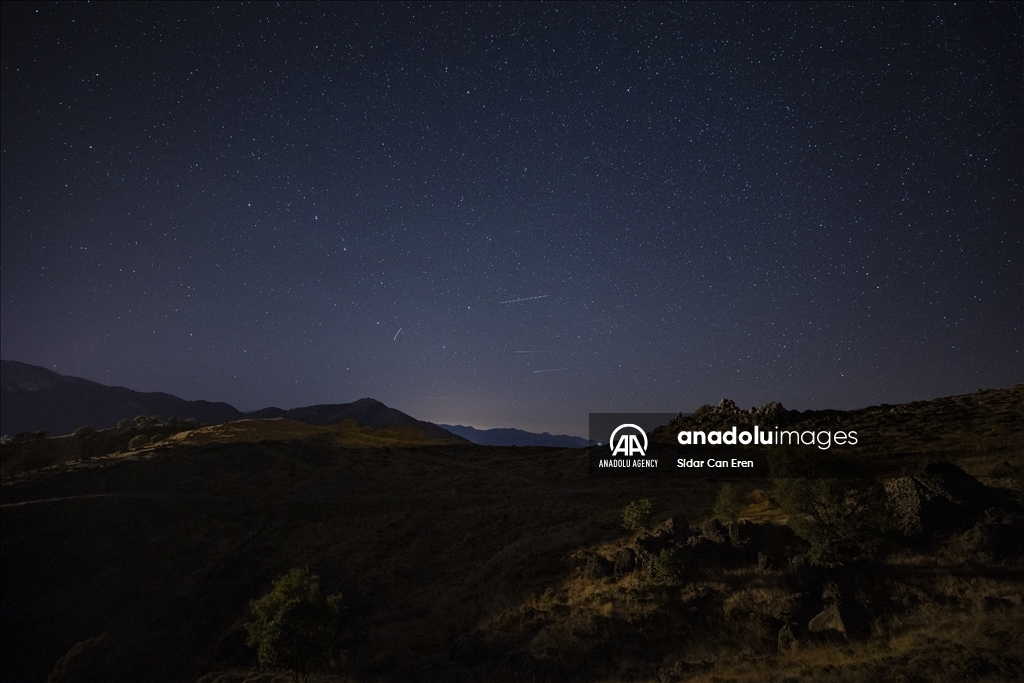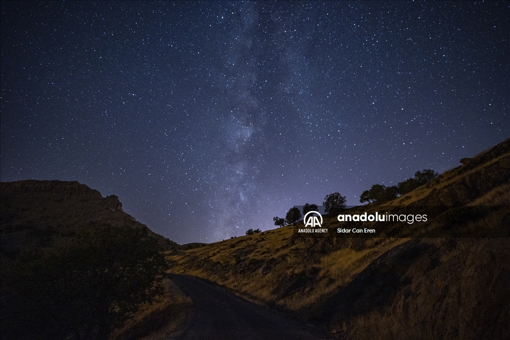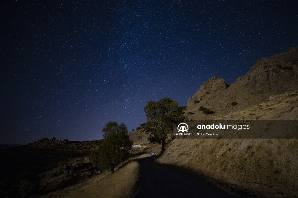 TUNCELI, TURKIYE - AUGUST 06: A long exposure photo shows starry night shining at an altitude of 2,097 meters on Duzgin Bawo Mountain at Nazimiye district of Tunceli, Turkiye on August 06, 2024. ( Sidar Can Eren - Anadolu Agency )Sidar Can Eren