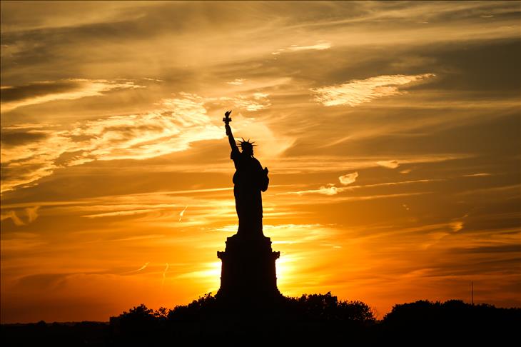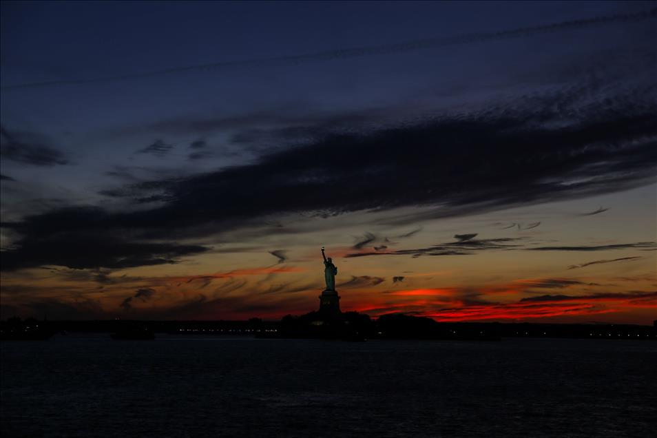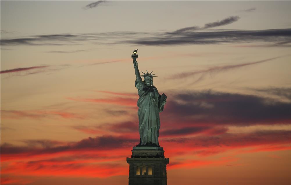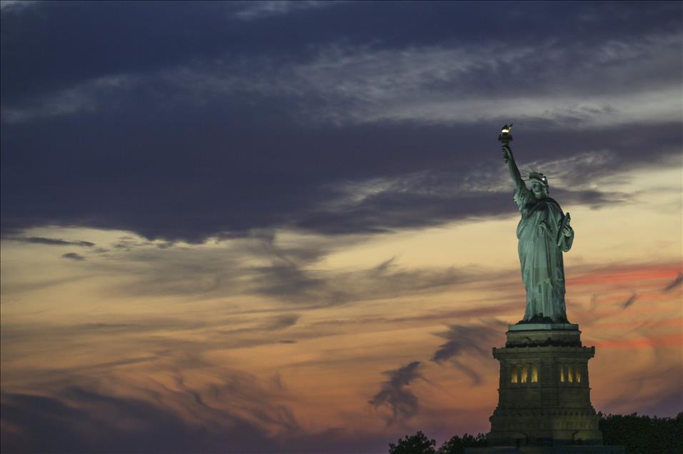 NEW YORK, NY - JULY 22: The Statue of Liberty is shown at sunset on July 22, 2015 in New York. The national monument which is 93 meters from the base of the pedestal to the tip of the torch, is a popular destination for visitors in town (Cem Özdel - Anadolu Agency)Cem Özdel
