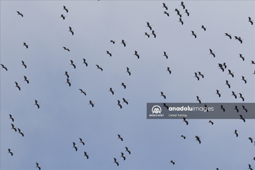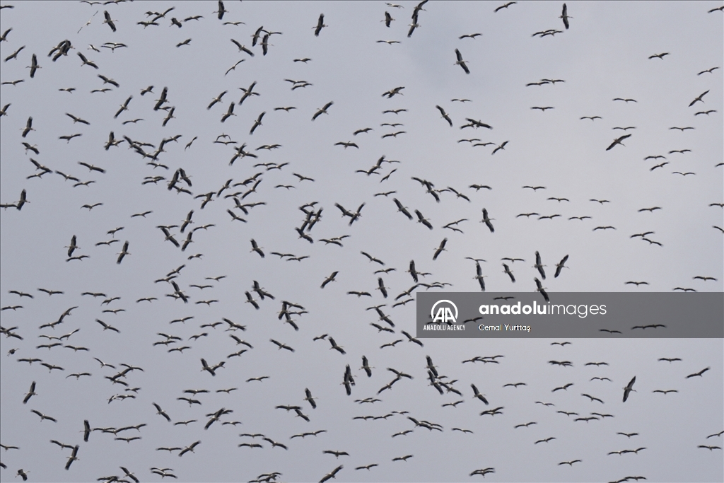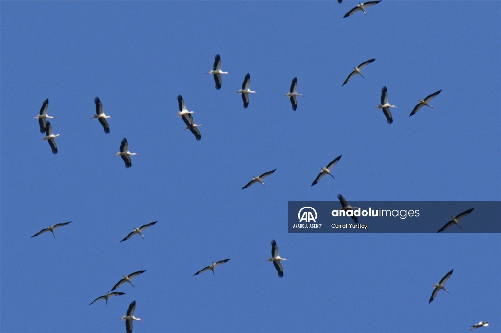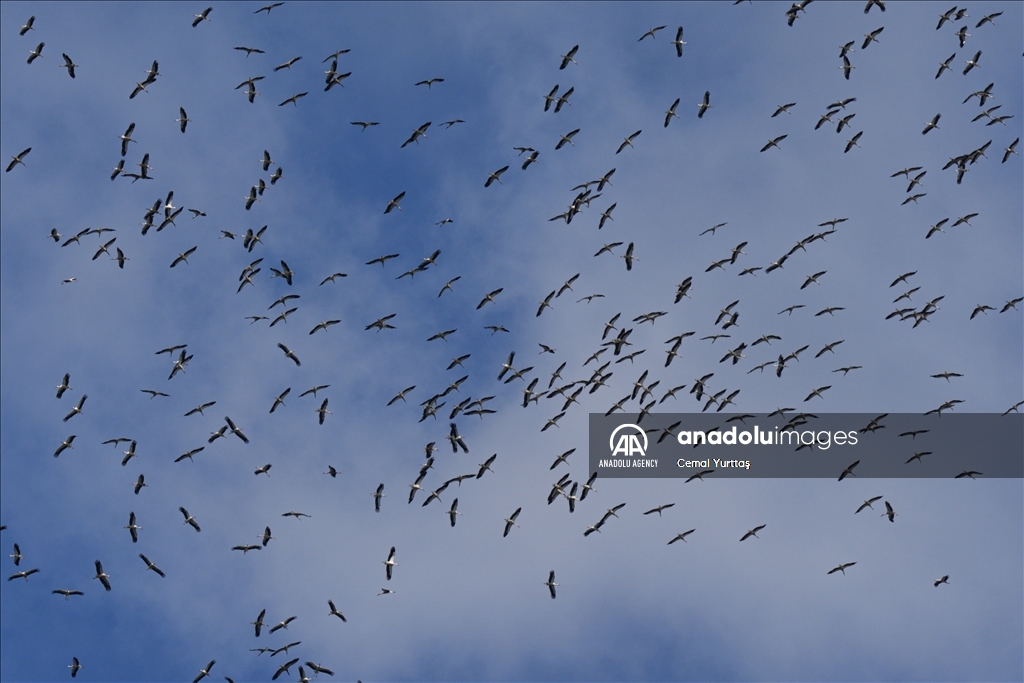 ISTANBUL, TURKIYE - AUGUST 13: White storks fly to migrate to the southern hemisphere with the approach of autumn in Istanbul, Turkiye on August 13, 2024. ( Cemal Yurttaş - Anadolu Agency )Cemal Yurttaş