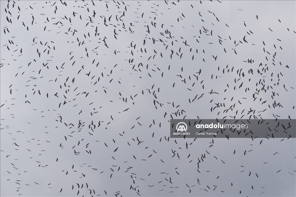 Storks migrating to south in skies over Istanbul