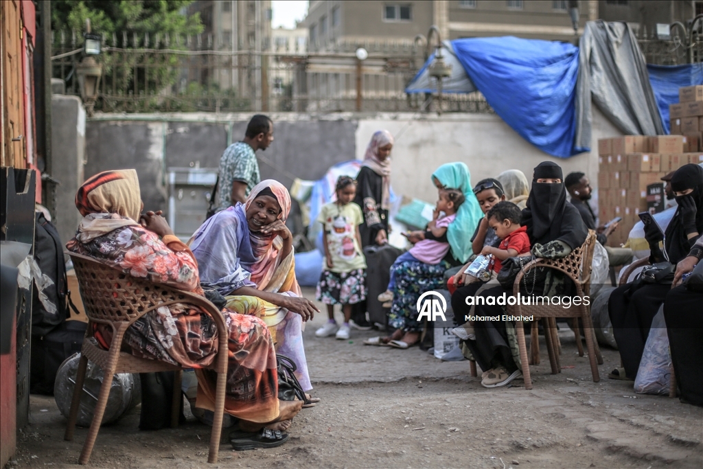 Sudanese who forced to flee and sought refuge in Egypt due to conflict, wait for buses at a station in Cairo, Egypt