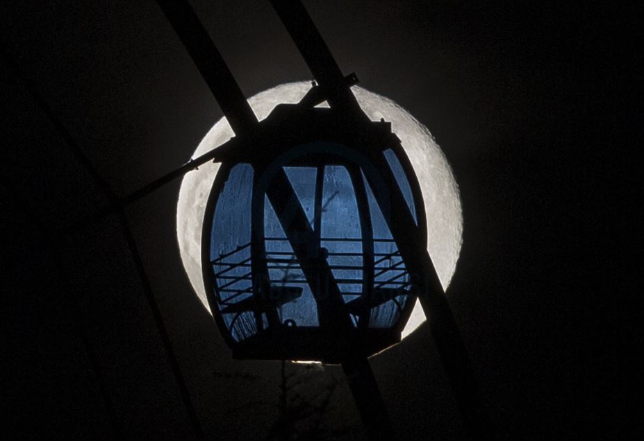 ANKARA, TURKEY - APRIL 8: Supermoon is seen behind a cable car in Ankara, Turkey on April 8, 2020. The Supermoon is a full moon that almost coincides with the closest distance that the Moon reaches to Earth in its elliptic orbit, resulting in a larger-than-usual visibl ( Erçin Top - Anadolu Agency )Erçin Top