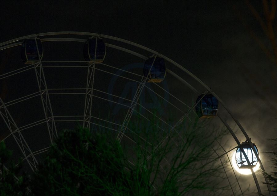 Supermoon rises over Ankara, Turkey on April 8, 2020. The Supermoon is a full moon that almost coincides with the closest distance that the Moon reaches to Earth in its elliptic orbit, resulting in a larger-than-usual visible