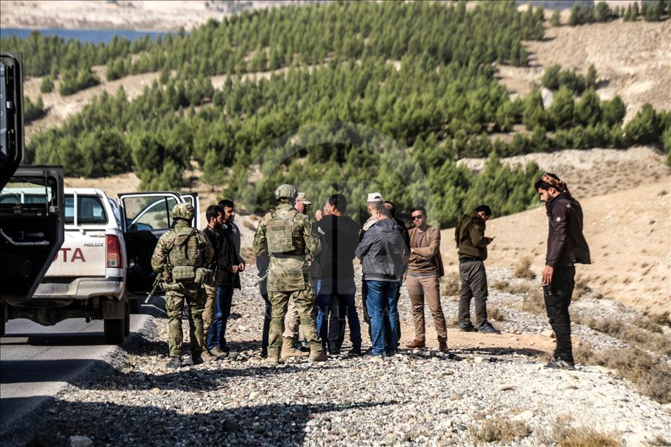 ALEPPO, SYRIA - NOVEMBER 18: Russian soldiers are seen as they enter the base at the Tishrin Dam on the Euphrates, which the US troops' withdrew from, located 90 kilometres east of Aleppo in Aleppo Governorate, Syria on November 18, 2019. ( Bekir Kasım - Anadolu Agency )Bekir Kasım