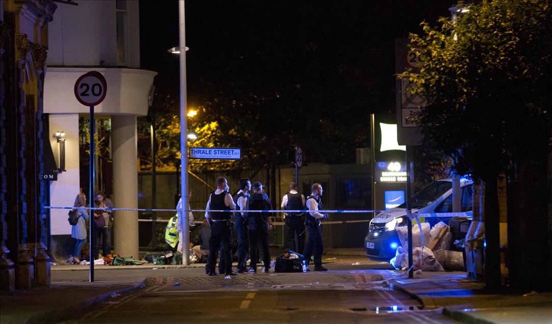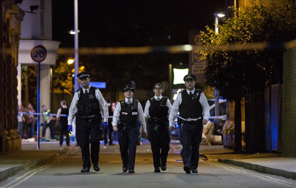 LONDON, ENGLAND - JUNE 3 : Police officers cordon off the area around London Bridge, central London, after reports of pedestrians being hit by a white van on London Bridge in London, United Kingdom on June 3, 2017. UK Police said Saturday they were responding to two incidents on London Bridge and Borough Market amid reports of a van mowing down pedestrians. ( Isabel Infantes - Anadolu Agency )Isabel Infantes