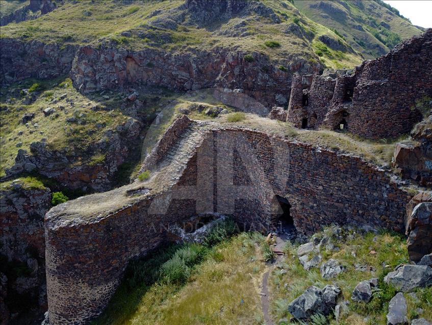 The ancient Devil’s Castle (Şeytan Kalesi in Turkish) sits on the edge of a cliff in the Karacay Canyon, north of Yildirimtepe village in the eastern Turkish province of Ardahan. It is not known when the structure was built. It is thought to have been founded during the rule of the Urartians.