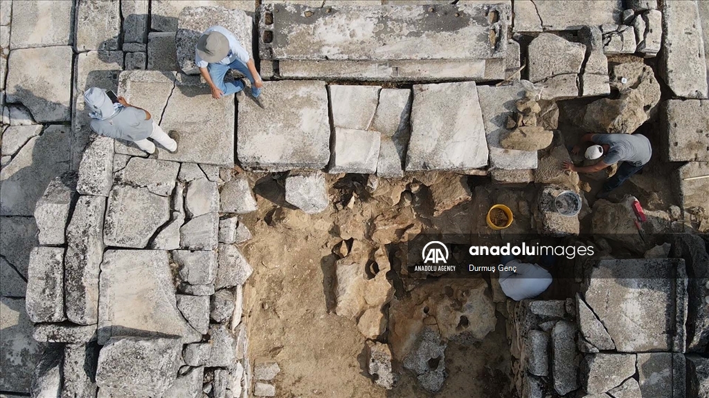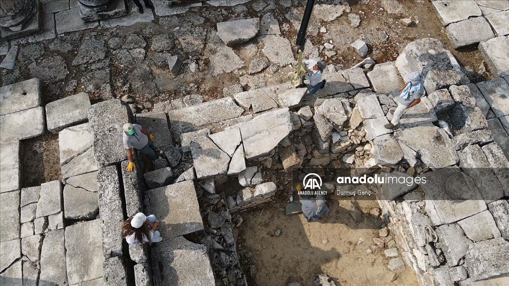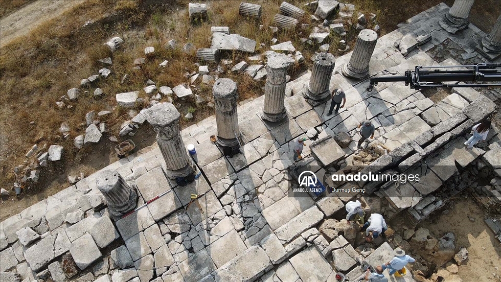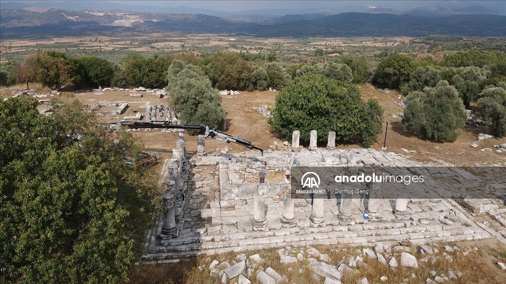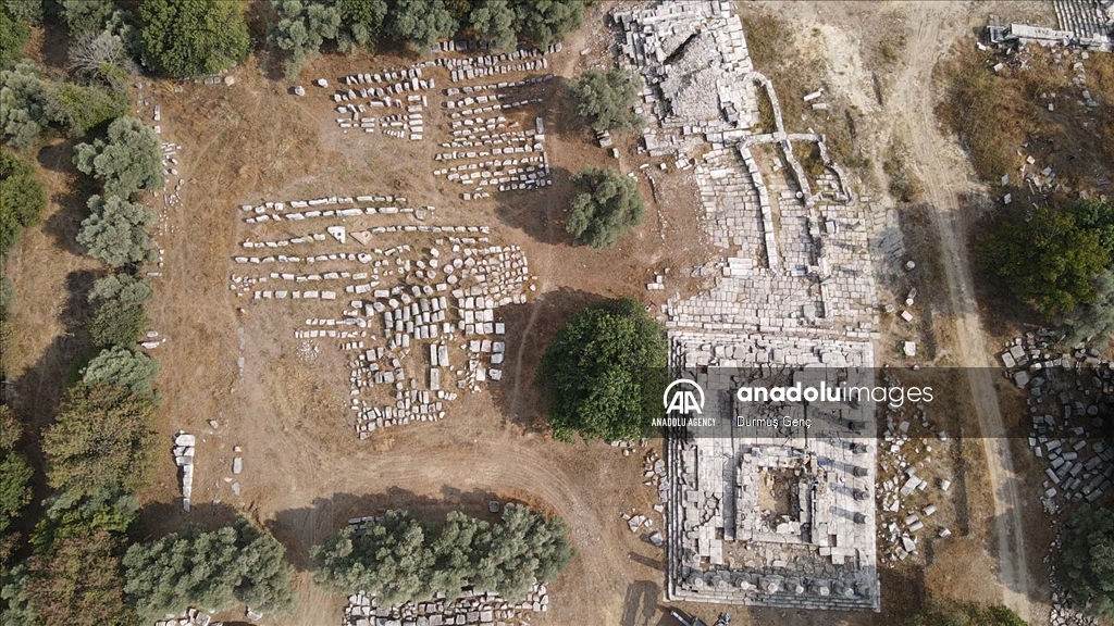 An aerial view of the 2,100-year-old temple, dedicated to Hecate, who is considered the “goddess of road mouths, gates, night, magic, witchcraft and ghosts” in classical mythology, in Mugla's Yatagan district, Turkiye on September 07, 2024.
