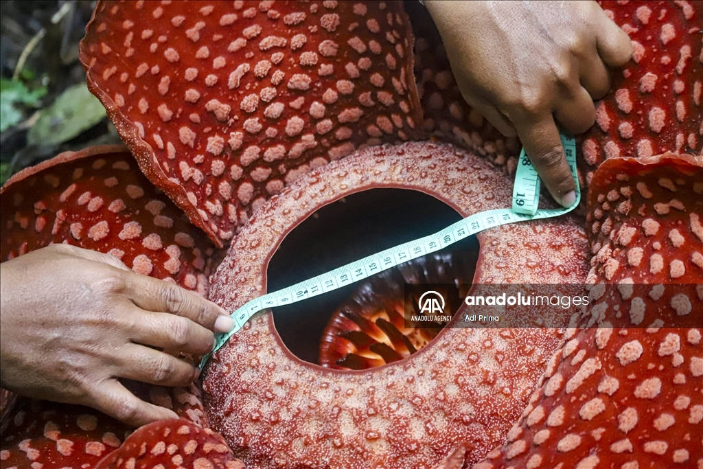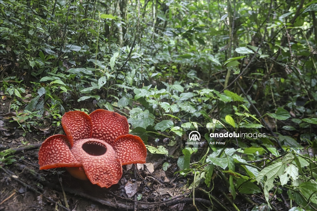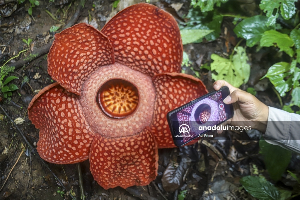 The Rafflesia Arnoldii flower is seen at Palupuah Forest, Agam District, West Sumatra, Indonesia on September 16, 2024. Palupuh forest is located at an altitude of 975 meters above sea level, with temperatures reaching 18-20 degrees Celsius