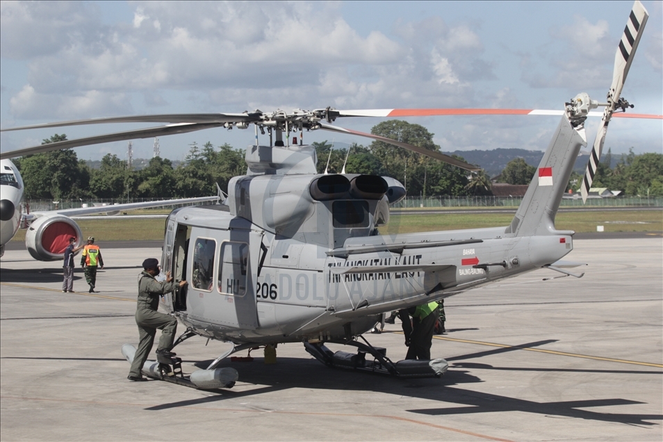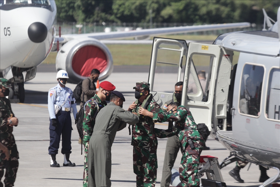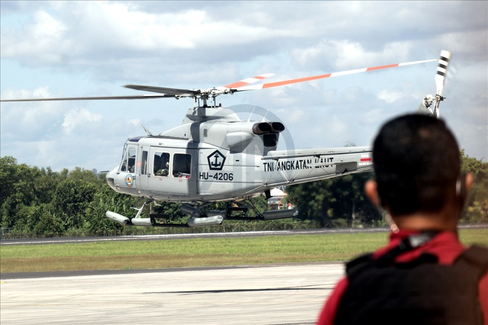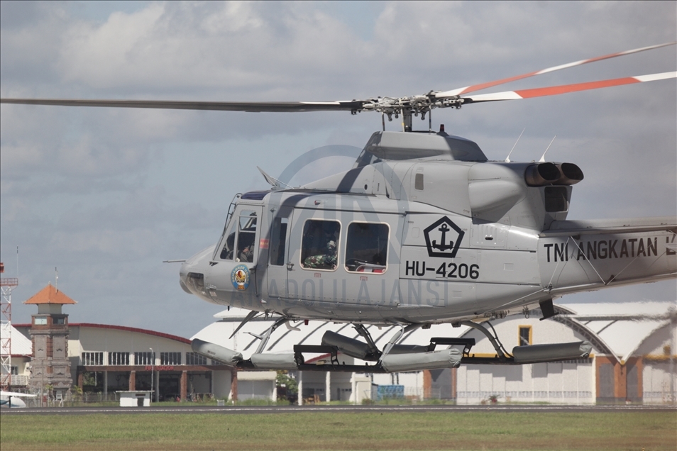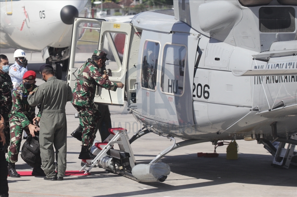 BALI, INDONESIA - APRIL 22: A helicopter carrying the Indonesian Military Commander Hadi Tjahjanto takes off heading to the Suharso Warship for the search operation of submarine KRI Nanggala 402 which went missing in the waters off the island of Bali in Bali, Indonesia on April 22, 2021. ( Zul Trionggono Edoardo - Anadolu Agency )Zul Trionggono Edoardo