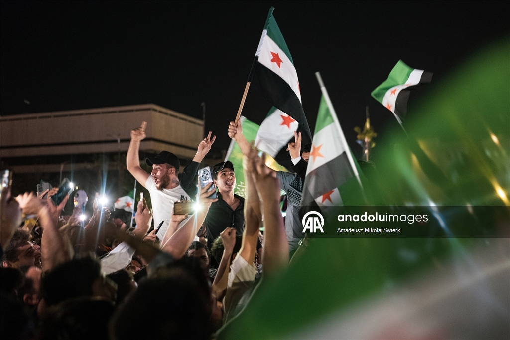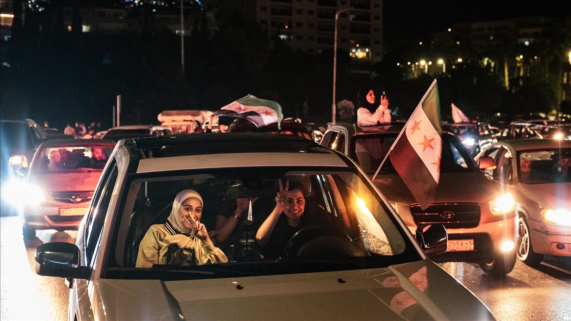 DAMASCUS, SYRIA - MAY 13: Syrian people flocked to the streets in the capital Damascus to celebrate US President Donald Trump’s decision to lift sanctions in Damascus, Syria on May 13, 2025. ( Amadeusz Mikolaj Swierk - Anadolu Agency )Amadeusz Mikolaj Swierk