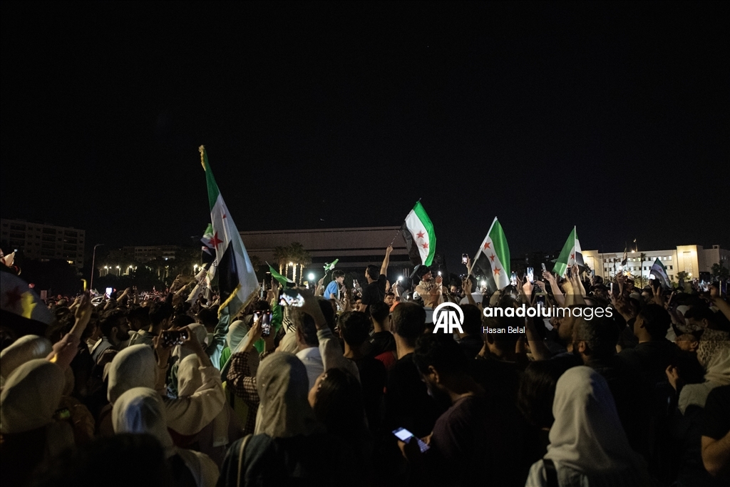 DAMASCUS, SYRIA - MAY 13: Syrians gather to celebrate after Trump announces he will lift all US sanctions on Syria on May 13, 2025 in Damascus, Syria. ( Hasan Belal - Anadolu Agency )Hasan Belal
