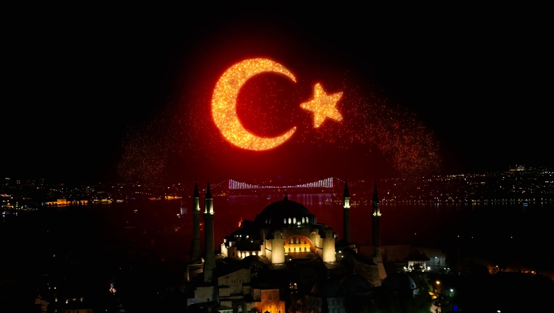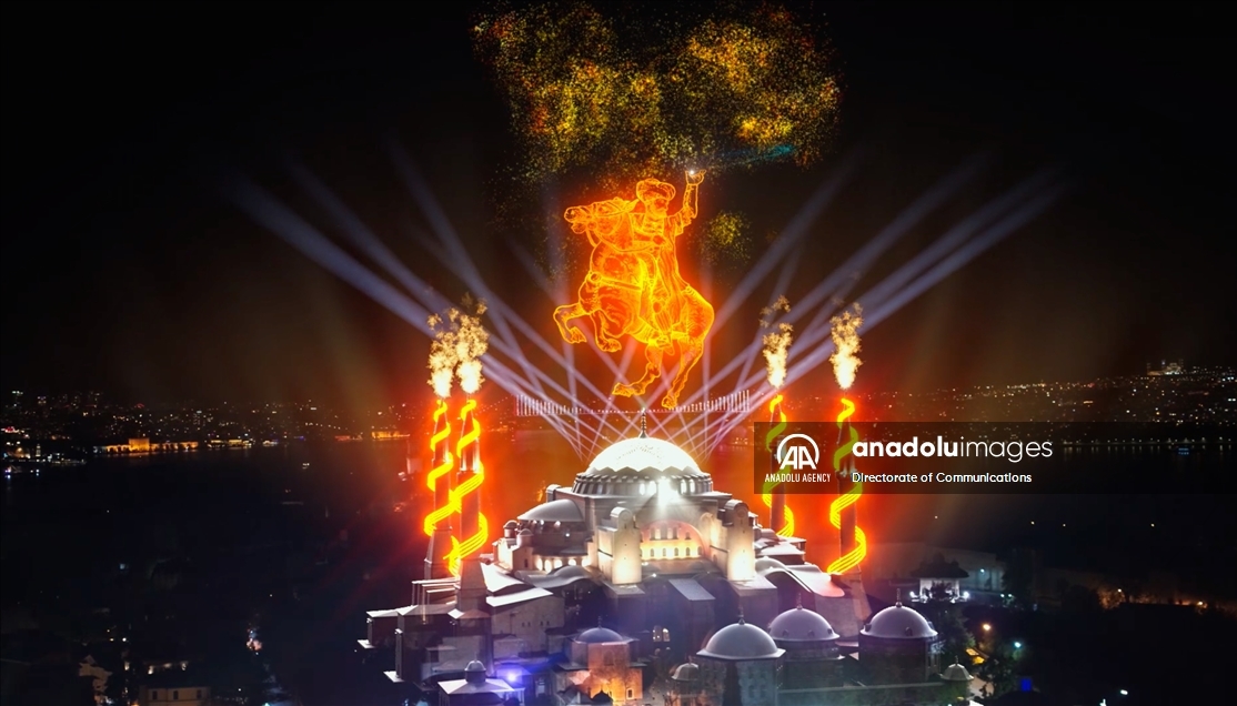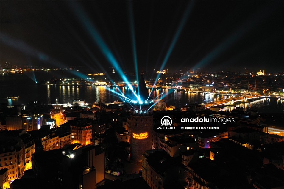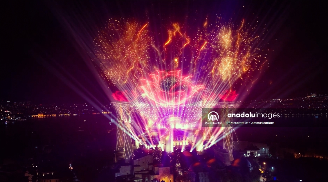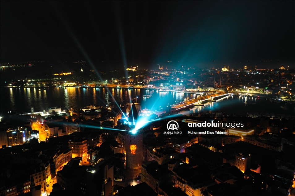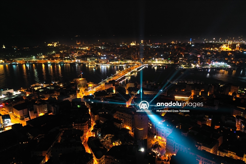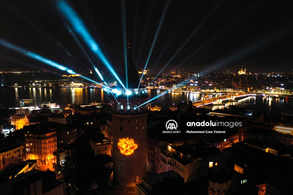 Celebrations include sky mapping show used for 1st time at Galata Tower, Hagia Sophia Grand Mosque