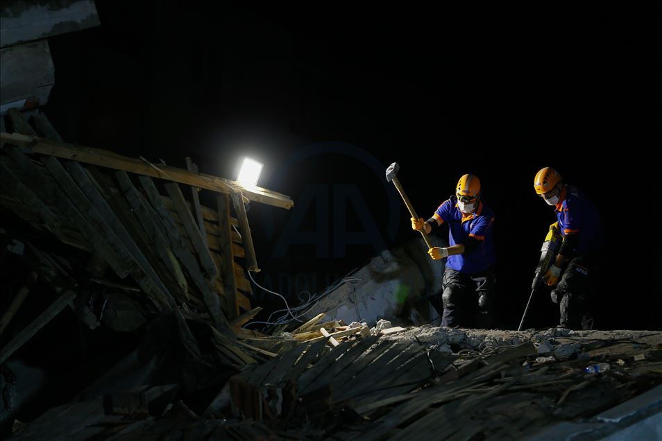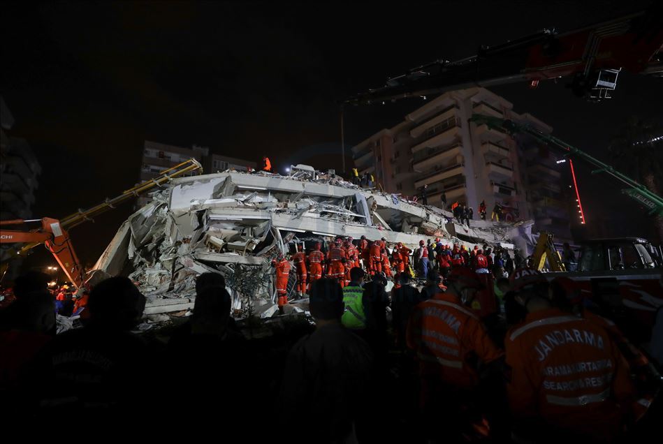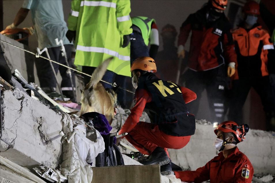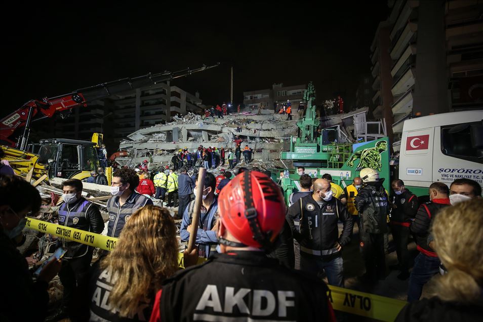 IZMIR, TURKEY - OCTOBER 30: Search and rescue works continue at debris after a magnitude 6.6 quake shook Turkey's Aegean Sea coast, in Izmir, Turkey on October 30, 2020. ( Lokman İlhan - Anadolu Agency )Lokman İlhan