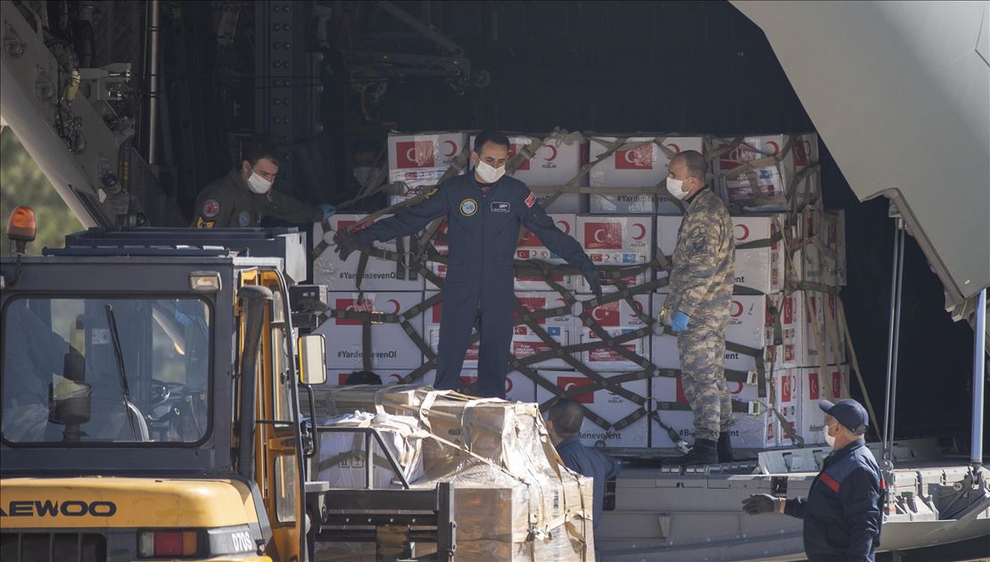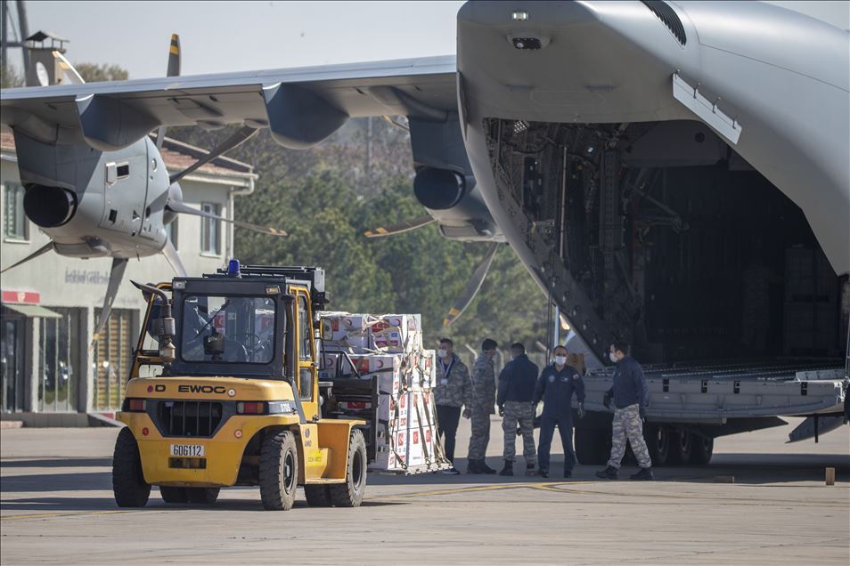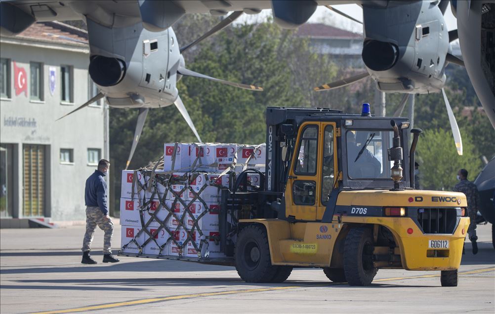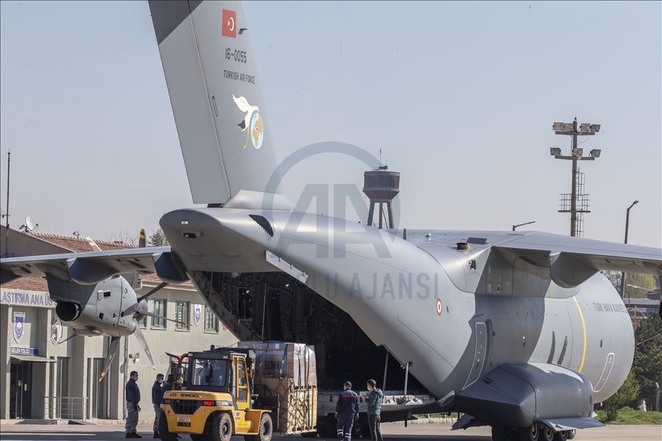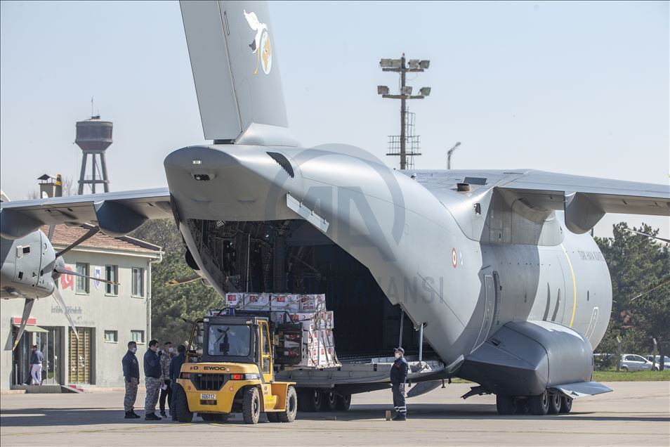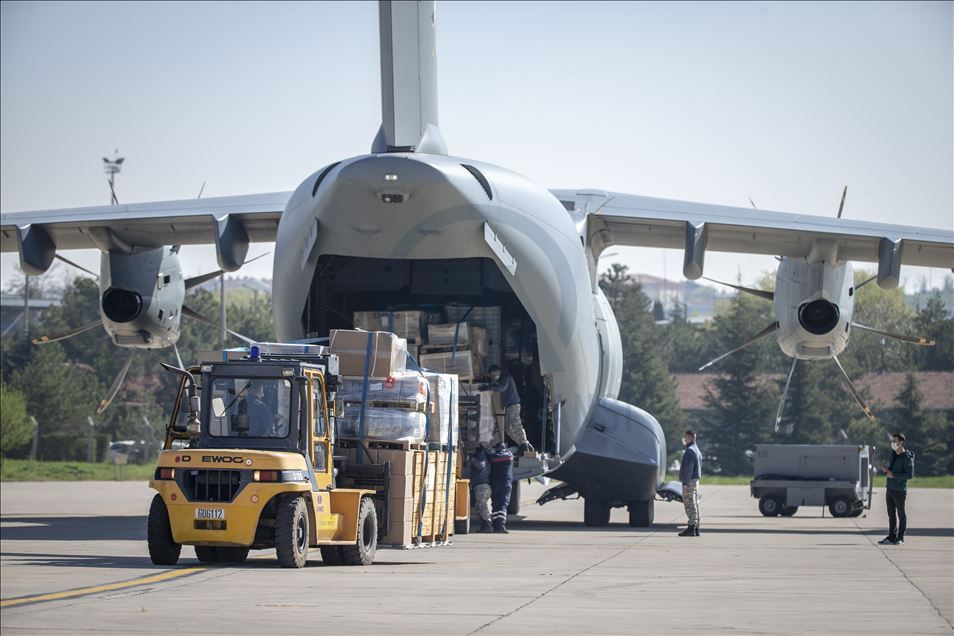 Turkey's medical aid packages are being prepared for a military cargo plane, that will deliver them to Somalia to support the fight against coronavirus (COVID-19) pandemic in Etimesgut Air Base in Ankara, Turkey on April 17, 2020.