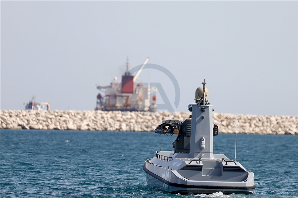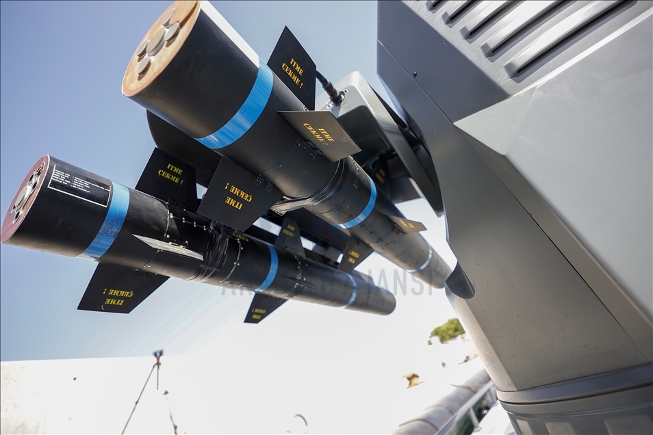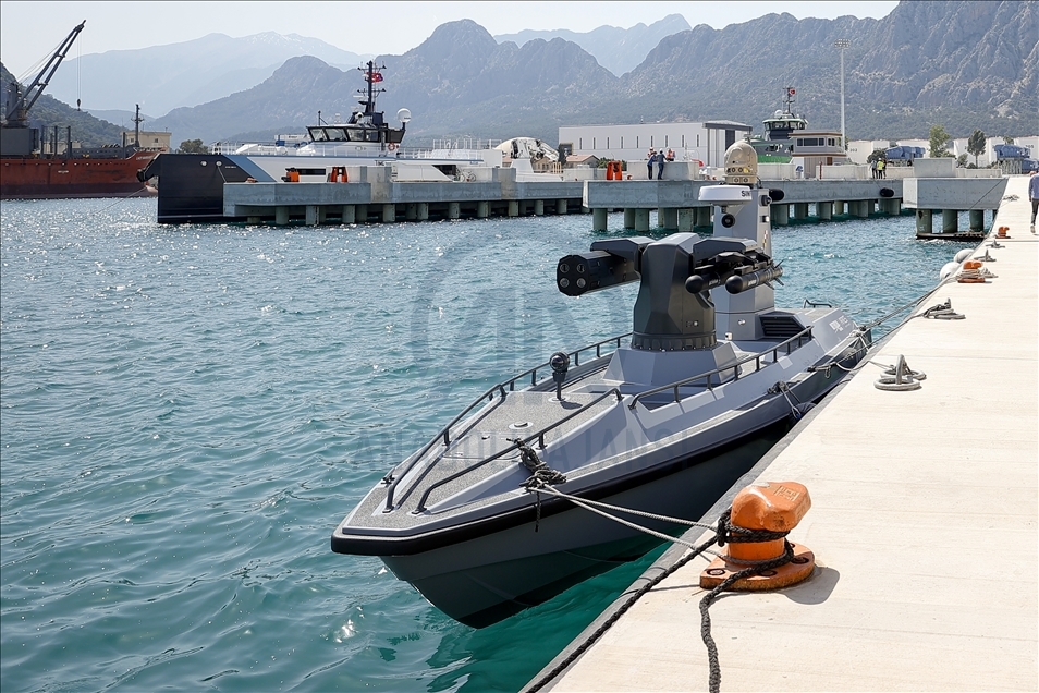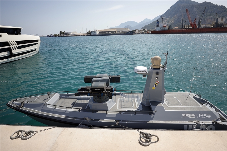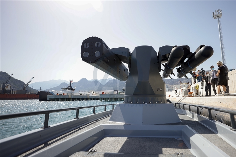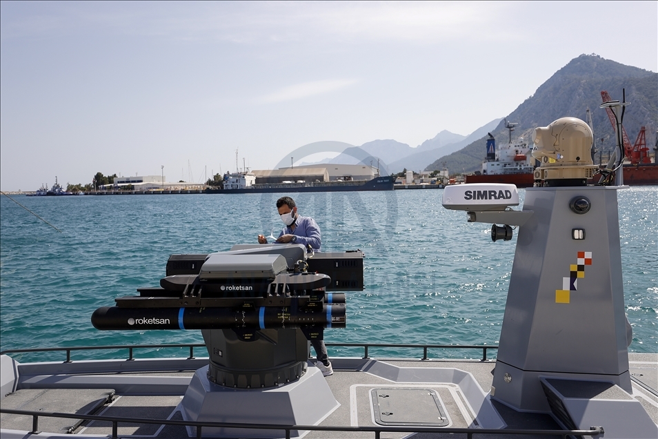 The Turkey's first armed unmanned surface vessel (SIDA) prototype is seen as it is ready for missile launch in Antalya, Turkey on May 07, 2021. SIDA, the first in Ares and Meteksan's ULAQ unmanned vessel series, boasts a cruising range of 400 kilometers (249 miles) and maximum speed of 65 km (40 mi) per hour, as well as indigenous encrypted communications, and day and night vision capabilities.