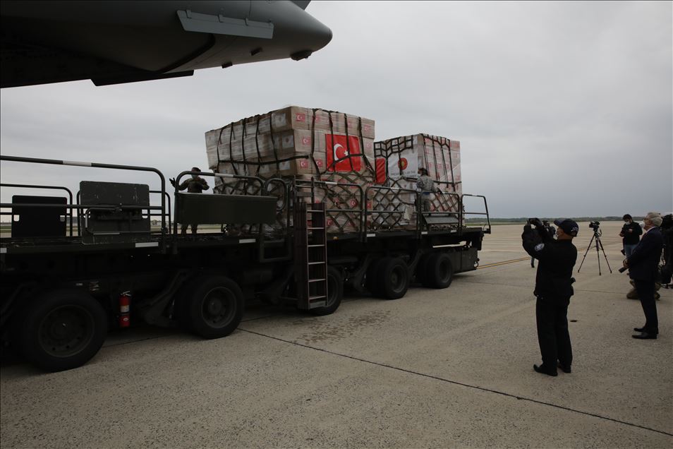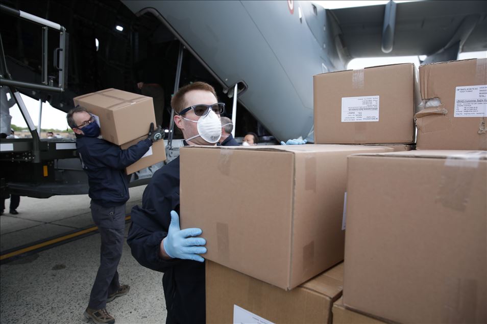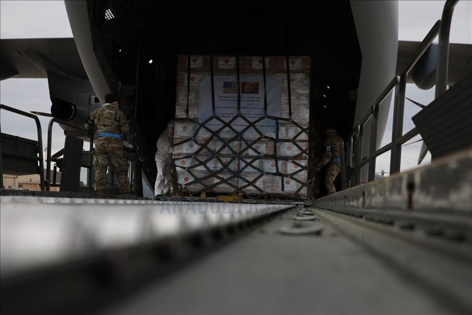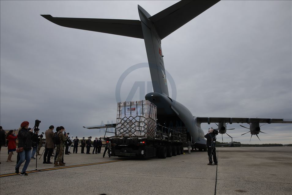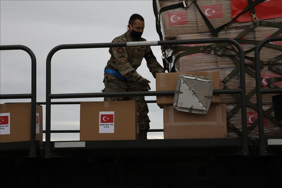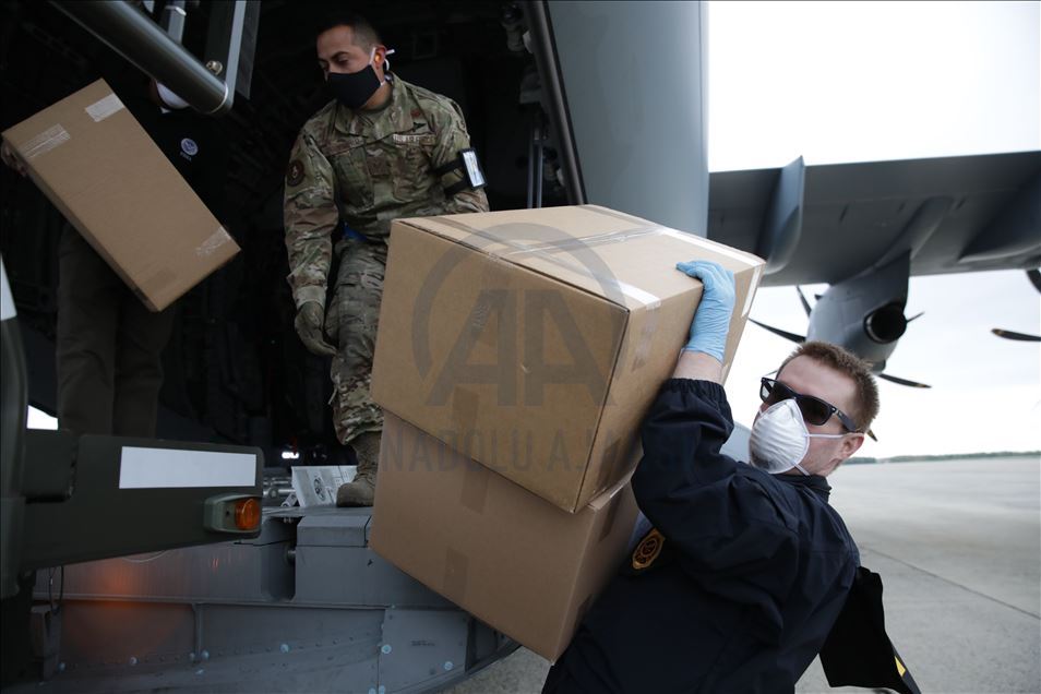WASHINGTON, USA - APRIL 28: Military officials prepare to carry the COVID-19 aid after a Turkish military plane carrying medical supplies landed in the US on Tuesday to support the country’s fight against the coronavirus pandemic as it reported over one million confirmed cases in Washington, United States on April 28, 2020. ( Yasin Öztürk - Anadolu Agency )Yasin Öztürk