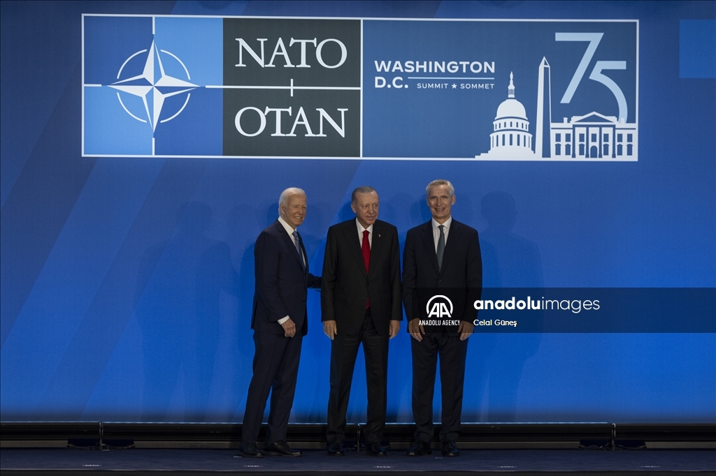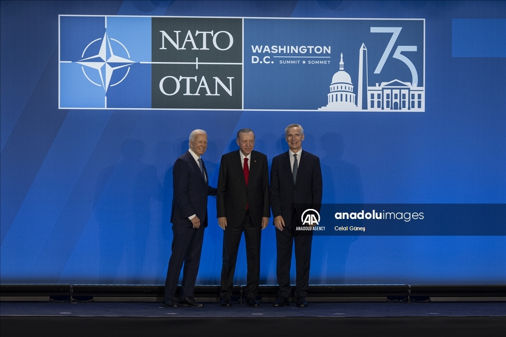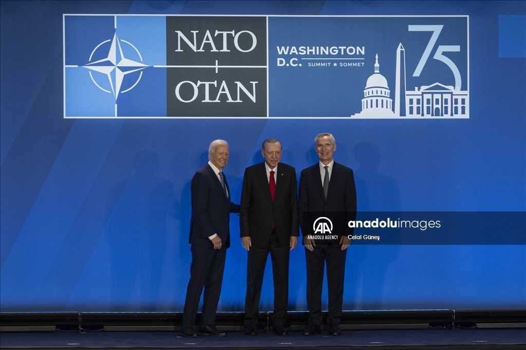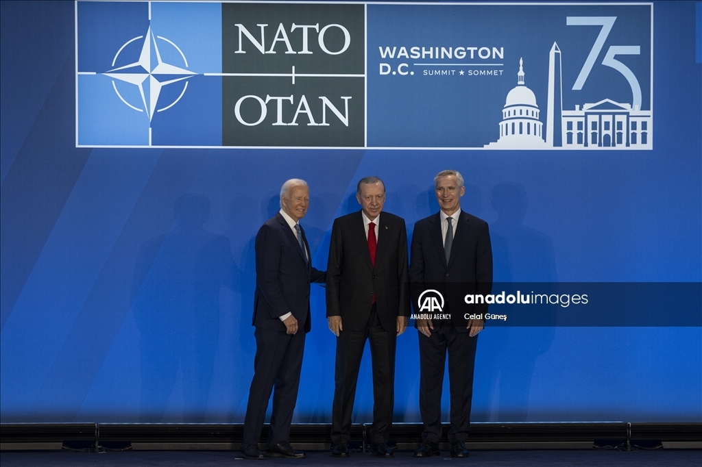 WASHINGTON D.C, USA - JULY 10: Turkish President Recep Tayyip Erdogan attends a family photo during the 75th NATO anniversary summit at the Walter E. Washington Convention Center on July 10, 2024 in Washington, DC.