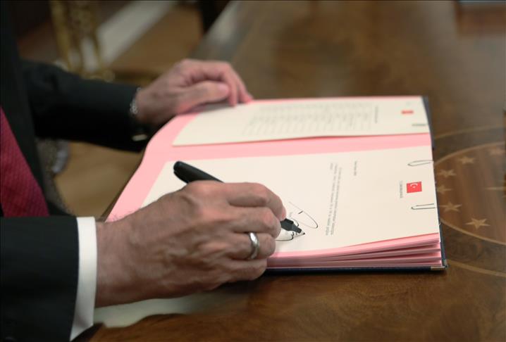 ANKARA, TURKEY - JULY 9: Turkish President Recep Tayyip Erdogan confirms the new Cabinet under Turkey's presidential system in Ankara, Turkey on July 9, 2018.