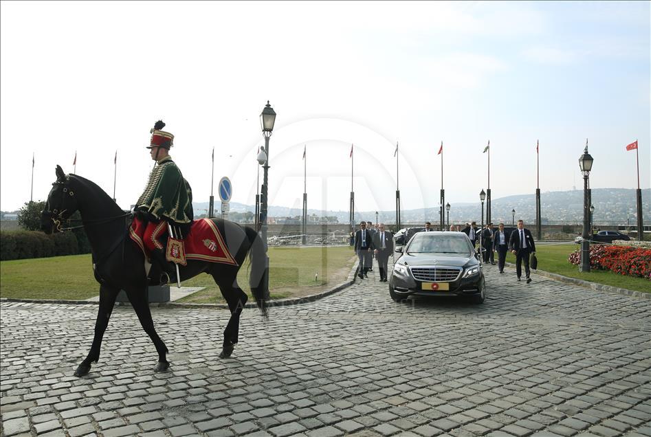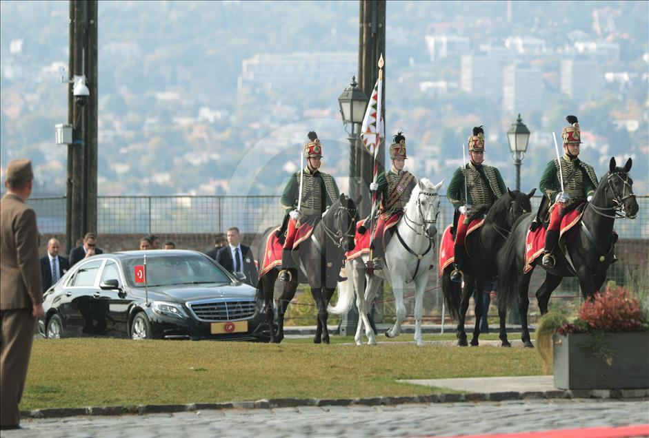 BUDAPEST, HUNGARY - OCTOBER 08: (----EDITORIAL USE ONLY – MANDATORY CREDIT - "TURKISH PRESIDENCY / MURAT CETINMUHURDAR / HANDOUT" - NO MARKETING NO ADVERTISING CAMPAIGNS - DISTRIBUTED AS A SERVICE TO CLIENTS----) Turkish President Recep Tayyip Erdogan (not seen) arrives at the Presidential Palace to meet President of Hungary Janos Ader (not seen) in Budapest, Hungary on October 08, 2018. ( TURKISH PRESIDENCY / MURAT CETINMUHURDAR / HANDOUT - Anadolu Agency )TURKISH PRESIDENCY / MURAT CETINMUHURDAR / HANDOUT
