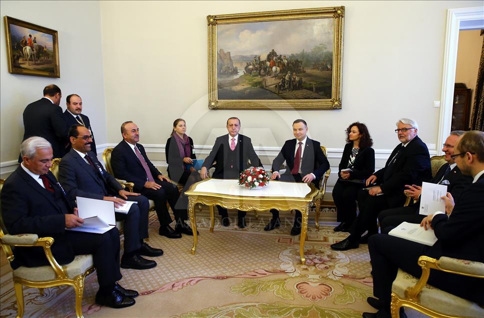 WARSAW, POLAND - OCTOBER 17 : Turkish President Recep Tayyip Erdogan (C-L) meets with President of Poland Andrzej Duda (C-R) after an official welcoming ceremony at Presidential Palace in Warsaw, Poland on October 17, 2017.Kayhan Özer